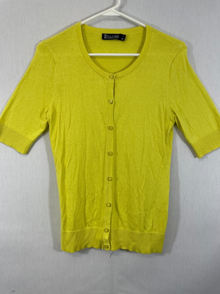 7th Avenue New York & Company Womens Green Button Front Cardigan Sweater Size S Brand: 7th Avenue New York & Company Department: Women Color: Green Size: Small Type: Sweater Style: Cardigan Pattern: Solid Sleeve Length: Short Sleeve Neckline: Round Neck Material: 53% Cotton, 40% Rayon, 7% Nylon Closure: Button Occasion: Casual Fit: Regular Vintage: No Country/Region of Manufacture: China Condition: Pre-Owned, In Good Condition SKU: 1-1761-0024 Measurements Armpit To Armpit: 16.5" Length: 25" “Please examine and study all pictures carefully for damage, wear, condition, and missing parts and pieces. We try to state any defects but the items will arrive as they are pictured. Thank you for your purchase! Please check out our other listings. My Purpose Thrift's mission is to work and partner with various local ministries, organizations, and nonprofits to help facilitate and monetize physical donations. We carefully select items that are in good to great condition to sell online and offer you the best products and best service. Be assured that your purchase will help local ministries/charities! We are a registered 501(c)3 organization. All Offers will be considered.”