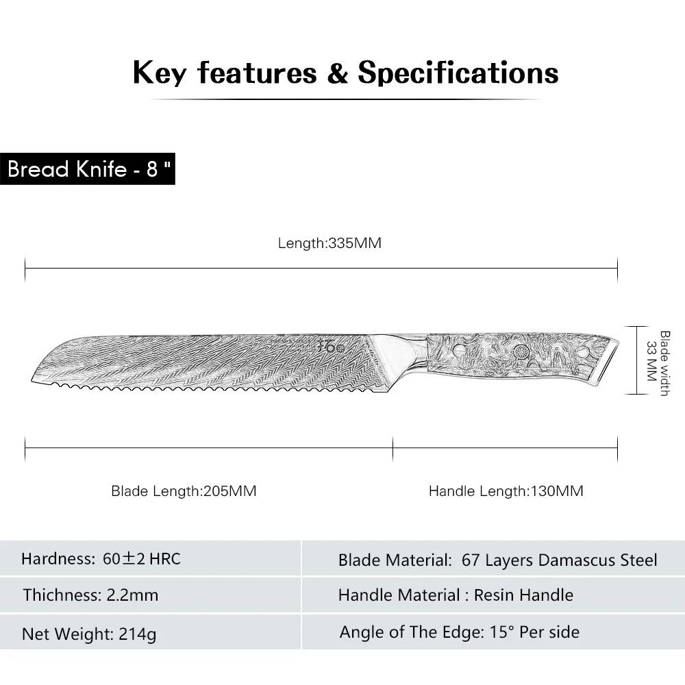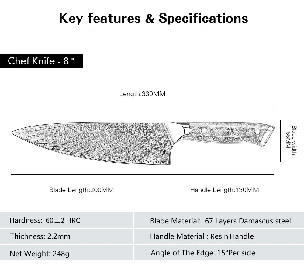 Feature: This kitchen knife set are made of high quality Japanese 67-layer Damascus steel and treated with 60HRC vacuum heat treatment and liquid nitrogen cooling. The Rockwell hardness of the cutting core is 60+. The cutting edge is 15 degrees, which means the blade is super sharp. Compared with similar products at this price, it has outstanding performance advantages.Exquisite appearance: beautiful and impressive pattern. Every time you pick it up, you can't help but taking cooking seriously. AND remember? Serious men are always handsome. Then don’t forget to wipe your chef knife after using, to make a perfect finish to your cooking.The chef Knife is one of the most useful and versatile designs available, which you can use to chop, slic... DAMASCUS KNIVES 7x TURWHO Kitchen Knife Block Set Damascus Steel Chef Santoku Bread Slicer Knife Feature: This kitchen knife set are made of high quality Japanese 67-layer Damascus steel and treated with 60HRC vacuum heat treatment and liquid nitrogen cooling. The Rockwell hardness of the cutting core is 60+. The cutting edge is 15 degrees, which means the blade is super sharp. Compared with similar products at this price, it has outstanding performance advantages. Exquisite appearance: beautiful and impressive pattern. Every time you pick it up, you can't help but taking cooking seriously. AND remember? Serious men are always handsome. Then don’t forget to wipe your chef knife after using, to make a perfect finish to your cooking. The chef Knife is one of the most useful and versatile designs available, which you can use to chop, slice, dice and mince all types of vegetables, fruits, meats, bread and fish. This chef knife will be your most valuable player, no matter what type you pick. So choosing an excellent chef knife is especially important. Design Characteristics: The optimal size and weight own a best balance.The shade of handle is designed based on the human engineering. This can lessen your tiredness, numbness, and soreness even if you grasp it for a long time. EASY CARE:All knives store safely In the acacia wood knife block. Simple appearance can decorate your kitchen without taking up space and reduce knife contact with air and risk of rusting.It is indispensable gift for Christmas parties. Specification: Brand: TURWHO Blade Material: Japanese VG10 67-layer Damascus Steel Handle Material: Resin Handle, G10 Handle Handle Color: The Resin Handle colors will be sent by Random, the Paring Knife with Red G10 Handle are Fixed Red Color. Cutting edge: 15 degrees Food Compatibility: Universal Manufacturer Warranty: Lifetime Weight: 4.95KG (including box) Notice: The Resin Handle colors will be sent by Random, and the Paring Knife with Red G10 Handle are Fixed Red Color. Package included: 1x TURWHO 3.5-inch Paring Knife (With Red G10 Handle) 1x TURWHO 7-inch Santoku Knife with Resin handle (Handle colors will be sent by Random) 1x TURWHO 8-inch Slicing knife with Resin handle (Handle colors will be sent by Random) 1x TURWHO 8-inch Chef knife with Resin handle (Handle colors will be sent by Random) 1x TURWHO 8-inch Bread Knife with Resin handle (Handle colors will be sent by Random) 1x TURWHO Multi-Purpose Kitchen Scissors 1x TURWHO Acacia Wood Storage Block Holder 1x TURWHO Premium Package Gift Box 1x TURWHO Cleaning Cloth 1x TURWHO Operation Instructions Item Specifics Brand TURWHO Set Includes Knife Set Type Knife Set Food Compatibility Universal Material Japanese VG10 Damascus Steel Cutting edge 15 degrees Color Random MPN USHHG528 Blade Edge Straight Handle Material Resin Handle, Red G10 Handle Features Well Balance, Knife Block & Shears Included Number of Items in Set 7 Custom Bundle Yes Manufacturer Warranty Lifetime Bundle Description 5x Knife, 1x Kitchen Shears, 1x Knife Block In Gift Box Making Method Hot Air Room Kitchen Blade Length 3.5in, 7in, 8in, 8in, 8in Block Holder Material Acacia Wood Payment All purchases will go through eBay secured checkout to ensure that your order is processed without any delays. After you have made your purchase you can either click on 'Pay now' or follow the instructions in an automated email that you will receive shortly after your purchase. During the checkout, you can make an immediate payment by PayPal account, MasterCard, Visa or select an alternative method of payment, and receive the necessary payment details. Please note: If you have already marked payment as sent But actually not paid, then you MUST mark as payment not sent otherwise the PAY NOW button will not be available. Shipping 1.all orders will be Dispatched within 2 working days after payment. 2.orders are not processed on weekends or public holidays. 3.usually takes 3-6 business days to most US destinations. 4.Your patience would be much appreciated. 5.all items will be checked carefully and packaging well before send out. 6.All orders are including the tracking number. Any questions, please feel free to contact us. Returns Refund or replacement request is available only the requests within 60 days after parcel received & return the item as the same condition as received. Please contact us to request a return authorization. Your name, auction number, and reason for return should be included in the email. All items returned must contain all original packaging materials. Please repack the item carefully. Item returned will be tested and a new replacement will be shipped to the buyer immediately when found defective. In the event that a suitable replacement is not available then a refund will be issued. If the item is found non-defective and buyer just don't like it, we will still make you a full refund, but the return shipping fee at buyer's expense. All item return must have a RMA number, Please contact us to request a return detail address and the RMA number, this can help us identify return items accurate. Buyer is responsible for additional shipping costs for items that are returned refused or undeliverable. We do not accept any retu
