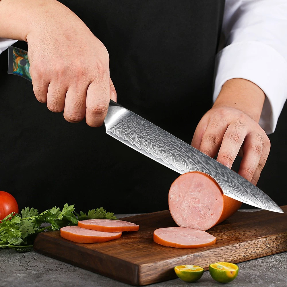 7x TURWHO Kitchen Knife Block Set Damascus Steel Chef Santoku Bread Slicer Knife