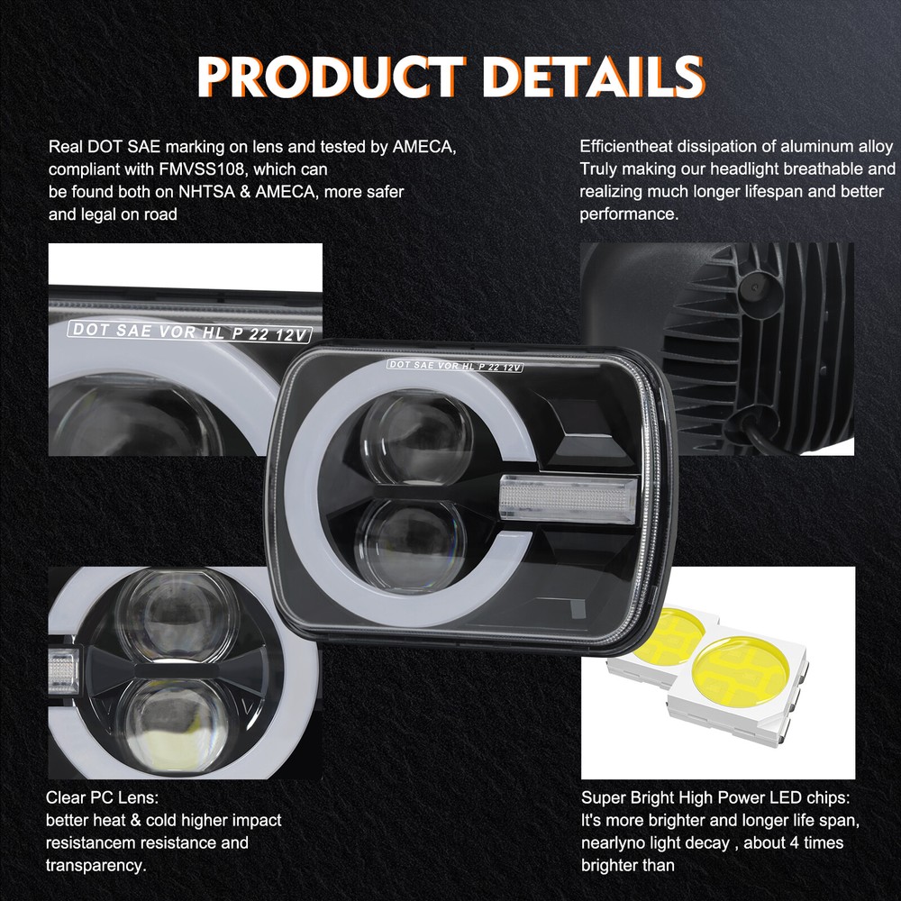 100% Brand New High Quality Factory Price AU Stock 60 Days Return Product Details About this item: DOT approved,legal on the road,simple installation,plug and play,usually in 15 minute Superior Brightness and Driving Visibility:Our headlights provide excellent brightness, ensuring no blind areas and dim spots . Confident driving, knowing that you have the highest visibility on the road. High quality and longevity: Our car lights are manufactured to the highest quality standards and are durable. Durable materials can withstand the test of time, providing reliable lighting year after year and enjoying long-lasting performance. SHINE AND TURN SECURELY - You need proper lighting to stand out when screaming down the road in poor weather. The cold-white DRL and intensified amber turn signals cut through elements to cautiously display intent and help avoid gnarly crashes. KEEP LENS UNCLOUDED - UV radiation takes a toll on the head light bulb enclosure, turning them urine yellow over time. Stay solid and look good with a premium build anti-UV polycarbonate lens. You bet they will stay as clear as the water of Hawaii. SIMPLE INSTALLATION - we designed this pair of headlight lamp kit for a quick garage install. A built-in H4 plug and the included extended screws make the process easy. Fitment: 5x7 LED Headlights fit any vehicles with 5x7 inch (also known as 7x6) Square Headlights; Super cool upgrade for 86-95 Jeep Wrangler YJ, 79-01 Cherokee XJ, Ford E-series F-series, C4 Corvette, GMC Savana, Dodge W250, etc. (Tips: please consult us if you are not sure whether it fits or not); a few old Japan brand cars need an extra relay kit ) With H4 plug.Easy Installation-Plug and Play.Venting hole Compatibility with headlights: H6054 H6054LL 6054 H5054 H6014 H6052 6052 6053 69822.Headlamps can fit up to 95% of vehicles, including sedans, light SUVs, 86-95 Jeep Wrangler JK LJ and trucks, motorcycles, 89 chevy k5 blazer, gmc safari 93, w250 dodge, c4 corvette and off-road vehicles. Can be used as low beam or high beam. Pins on plug may need to be moved on some vehicles. You may need to adjust the PINS - use different Ground/Low/High beam positions on the pins Features: Each light has high beam, low beam, daytime running light (white DRL) and amber turn signal light. Easy installation: Plug and Play, the headlights are with standard 3-Pin plug (H4 plug). IP68 waterproof rate, special heat sink design for efficient cooling dissipation. Breathing Hole is designed to drive away moisture or water, contributing to longer lifespan above 50,000 hours, provide safe and stable light source for your cars or trucks. Compatible with headlights: H6014/H6052/H6054/6054/H5054/H6054LL/69822/6052/6053. Also suitable for most of other vehicles, including sedans,SUVs,1986-1995 Jeep Wrangler YJ and 1984-2001 Jeep Cherokee XJ and trucks, motorcycles, 89 chevy k5 blazer,gmc safari 93,w250 dodge,c4 corvette,1983 Toyota hilux twin cab and all series car and off-road vehicles. Product information: Color:Black Specific Uses For Product:Head Lights Vehicle Service Type:For Jeep, Chevy, GMC, Ford, TOYOTA, Nissan, Semi-Trucks, various other makes and models Year :2024 Special Feature:High Beam, Low Beam, DRL, Turn Signals Auto Part Position:Front Lens Color:Clear Lens Material:Polycarbonate Item dimensions L x W x H:7.75 x 3.63 x 5.5 inches Item Weight:5.02 pounds Product Dimensions:7.75 x 3.63 x 5.5 inches Special Features:High Beam, Low Beam, DRL, Turn Signals Dimensions: 5x7'' 7x6'' Power: 120W/set Housing Color: Black Beam Pattern: High & Low Beam + DRL + Turn Signal Working Temperature: -40~85 degrees Celsius Operating Voltage: 9-32V DC (fits 12V, 24V vehicles) Waterproof Rate: IP 68 Life Span: 50000Hours Material : Die-Cast Aluminum Alloy Housing with high heat disapation Lens Material: PC Color Temperature: 6000K DOT FMVSS-108 Approved Warranty: 3 Year Warranty Compatible with headlights: H6014 / H6052 / H6054 / 6054 Package included 2pcs 5X7 led headlights + 2pcs H4 adapter Harness Vehicle Service Type Applications: Models with 5"x7"(7"x6") headlights For example:(Include but not limited) Fit for Jeep Wrangler YJ(1987-1995) Fit for Jeep Cherokee XJ(1984-2001) Fit for Jeep Comanche MJ(1986-1992) Fit for GMC Savana 3500 (1998-2002,2004,2007,2009-2012) Fit for GMC Savana 2500 (1998-2001,2004,2006,2008,2010-2012 ) Fit for GMC Savana 1500 (1998-2001,2003,2005,2007,2009-2012 ) Fit for GMC Safari (1998-2002,2004,2005) Fit for GMC K3500 (1997-2000) Fit for GMC K2500 Suburban (1997-1999) Fit for GMC K2500 (1997-2000) Fit for GMC K1500 Suburban (1997-1999) Fit for GMC K1500 (1997-1999) Fit for GMC C2500 Suburban (1997-1999) Fit for GMC C2500 (1997-2000) Fit for GMC C1500 Suburban (1997-1999) Fit for GMC C1500 (1997-1999) Fit for Ford F250 F350 E150 E250 E350 Fit for Chevrolet Cargo Van Express 1500 2500 3500 Fit for Chevy S10 Sonoma Fit For Chevy Astro Fit for Dodge Ramcharger (1988-1990) Fit for Dodge Ram Pickup (1990-1993) Fit for Dodge W250 (1990-1993) Fit for Dodge Van (1988-1990) Fit for Dodge Ram 50 (1981-1993) Fit for Dodge Omni (1988-1990) Fit for Dodge Colt (1982-1983) Fit for Dodge w250 Fit for Toyota pickup truck Fit for Subaru XT Fit for Nissan Pickup Hardbody 240SX D21 NX Fit for Mitsubishi Mighty Max Mighty Max Fit for Freightliner FL 50 60 70 80 112 Fit for INTERNATIONAL 4700 4900 8100 9900 9900I IX 9200 9400.. Payment Shipping Returns Contact Us Feedback Payment We accept PayPal, Google Pay, VISA, Master Card, Amex. Credit card payment can also be made via PayPal. Please make sure your eBay address is correct before you pay. All unpaid cases will be opened automatically after 7 days because eBay charges for the final value of the transaction. Shipping Australian orders are shipped by AU Post / TOLL / Fastway, usually take 3-6 business days to complete delivery. Package will be sent out within 24 hours after the pament is completed. Delivery is not available on weekends, public holidays or after business hours. Please allow 5