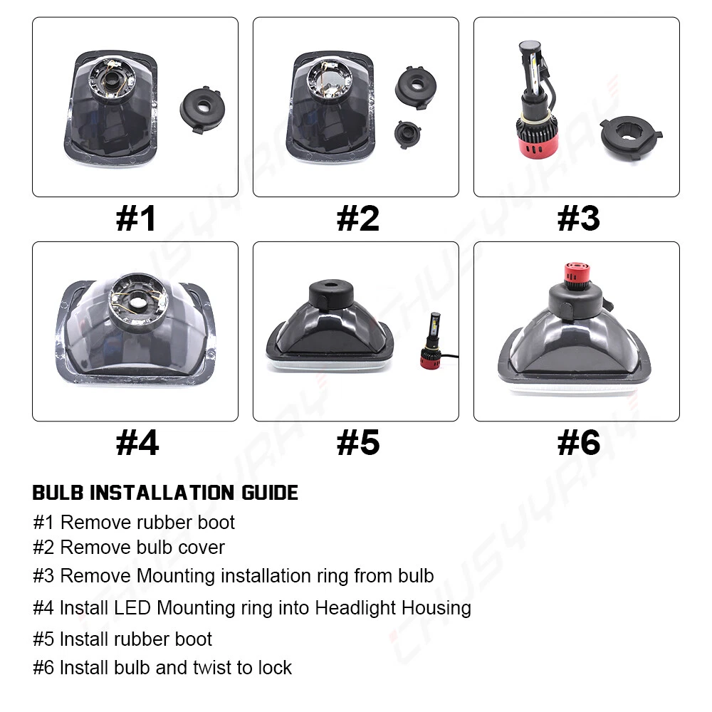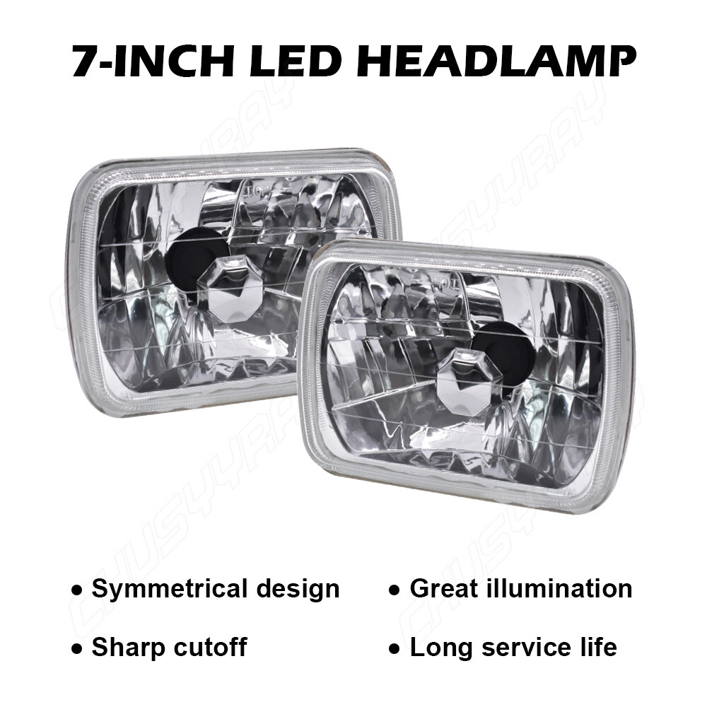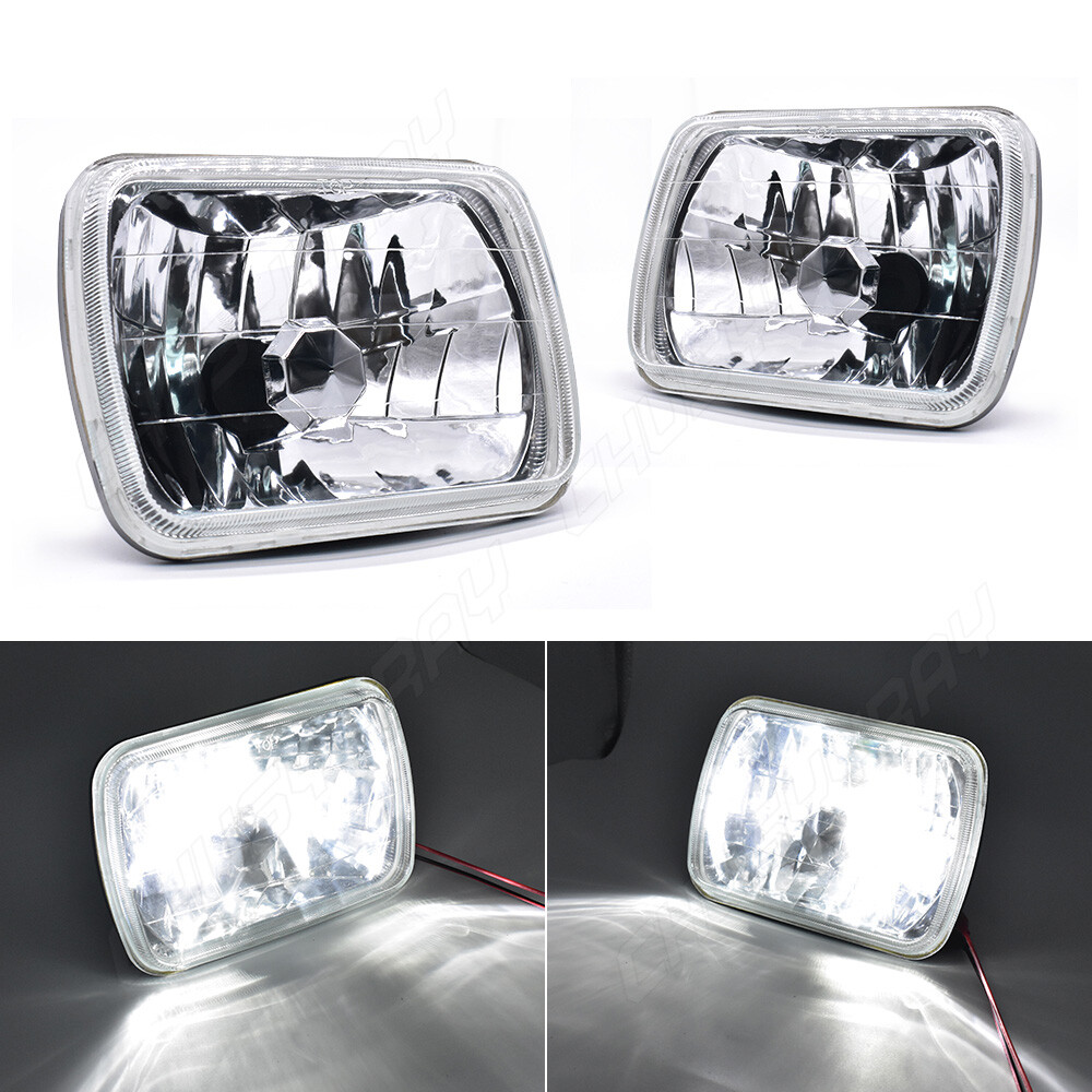 Important Notice! The 7x6 inch headlight housing is randomly available in both old and new model (the new model comes with a blue T10 led bulb inside the headlight houisng), and We will also give away white T10 LED Bulb for free. If you have any questions, please contact us. Product Features: Chrome housing with clear lens design , Lens is made out of clear glass. Enhance visibility during night time, heavy rain, snow, or dense fog. Precision optics offers a highly controlled concentration of light to enhance visibility. Direct replacement, easy installation. High quality grade materials to withstand the most rigorous weather conditions. This listing is for a pair of headlights, the bulbs are included. A pair of headlight ,H4 bulb is compatible with the headlight. Universal fitment 100% Brand new in box 7x6" Rectangle DIAMOND CHROME HOUSING H4 LED light bulbs ( included & come pre-installed) 6000k (white) 2x Headlights ( 1 driver's side and 1 passenger's side ) Made from real glass and not cheap plastic Come with a H4 plug In-stock Ready to ship Tech Specs: Bulb Size: 9003 H4 Light Mode: Dual Beam Usage: Headlight LED Quantity: 2pcs Flip Chips Amplified Flux Beam LED Bulbs (Package of 2) Wattage: 60W/set (30W/bulb) Luminous Flux: 6000LM/set (3000LM/bulb) Color Temperature: Bright White 6,000K Lifespan: Over 50,000 hours Certification: IP67 Water and Dust Seal, CE, RoHS Voltage: DC 9-16V Package Includes: 2 Pair of Headlight Housing (Pair Passenger and Driver Side) 2 Pair of H4 9003 LED Bulbs