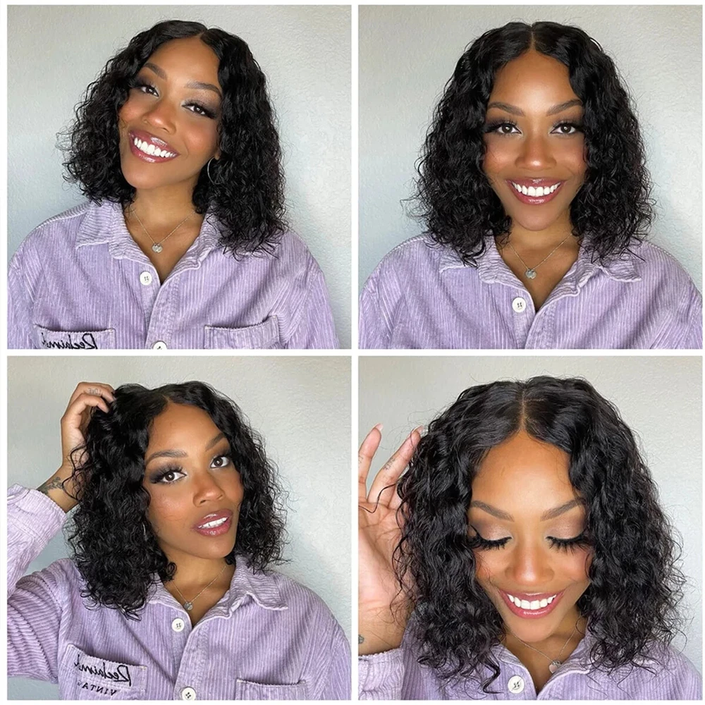 Specifications: Material: 100% Human Hair Weight: 225g-260g length: 8-16 Inch Texture: Deep Wave hair Hair Tape: Brazilian hair,Burmese hair,Indian hair,Peruvian hair Hair Style: 7x6 Glueless Human hair Bob lace wig Hair color: natural color Lace Color:Transparent lace Features: l No Chemical,No Shedding,No Tangle,No Smell . Shiny,Smooth,Silky Hair l Double Weft , Factory D irect S ales l Cap: Average cap size22.5inch,4combs in the cap to fix easily. l Lace Part: 7x6 Glueless Lace Wig Pack Content: 1 * wig+1*wig cap