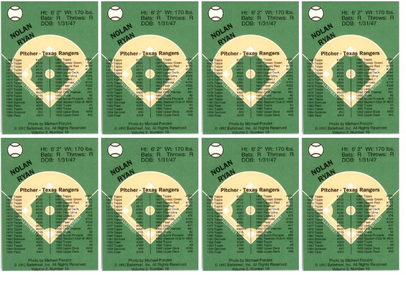 (8) 1992 Ballstreet Nolan Ryan Texas Rangers Card Lot Condition: NM-MT