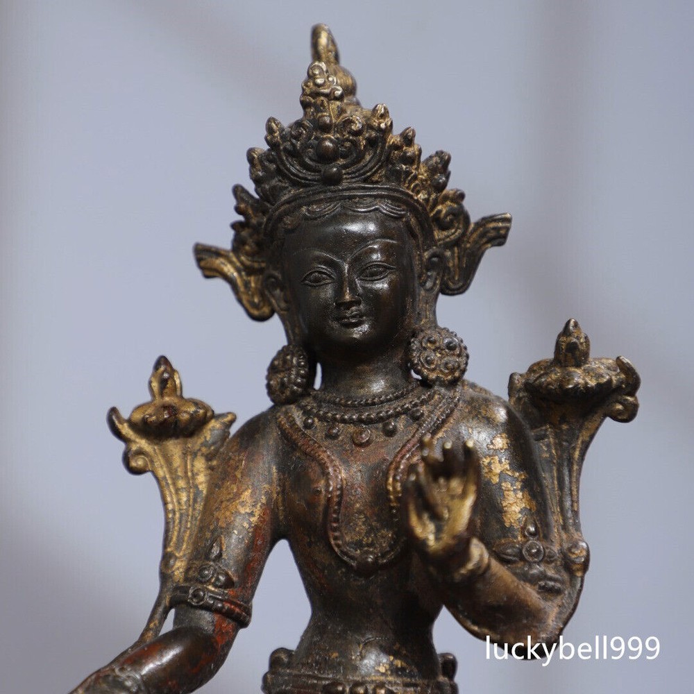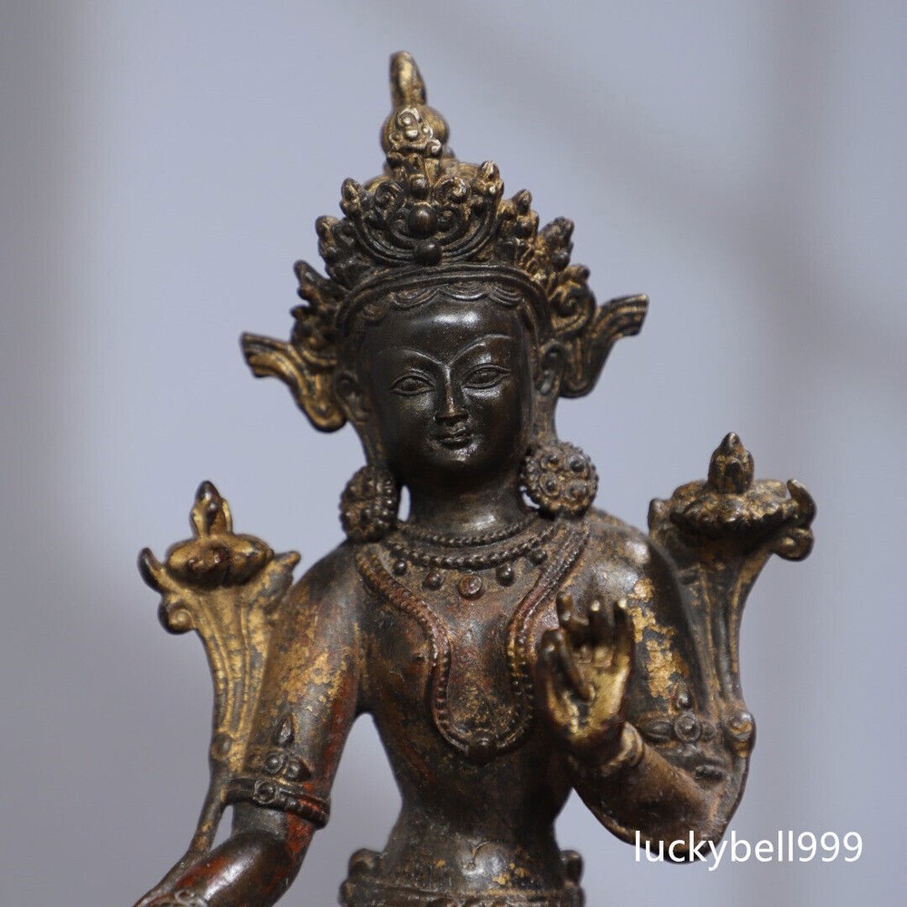 8" China Antique Tibetan Buddhism Temple Bronze gilt Green Tara Buddha statue Size: Height: 20cm wide: 14cm weight: 1.22kg Material:Bronze NOTE: Withno wood stand Condition: Good condition Origin: China