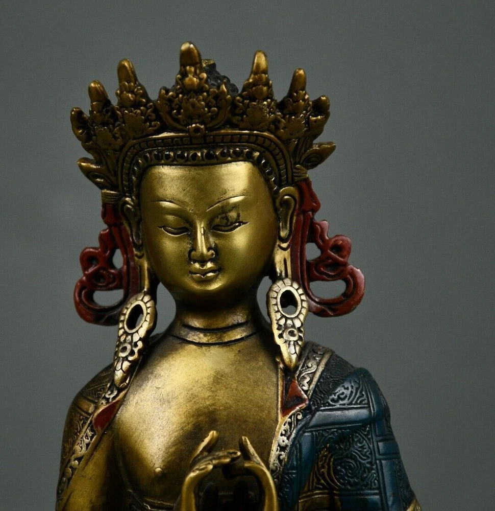 8.6 Inch Antique Tibet Bronze Mahakala Wrathful Deity Buddha Statue with Backlight