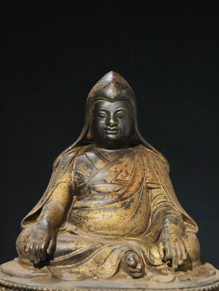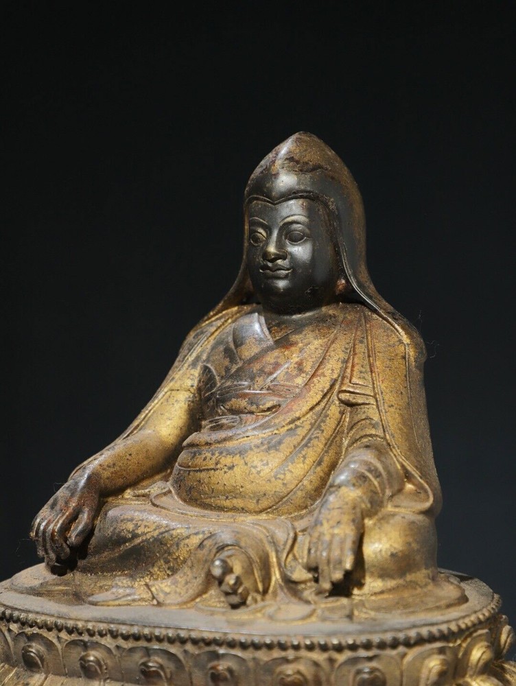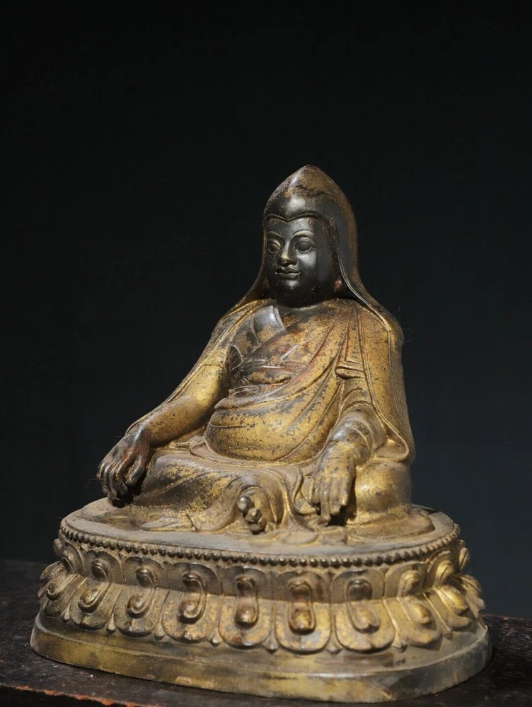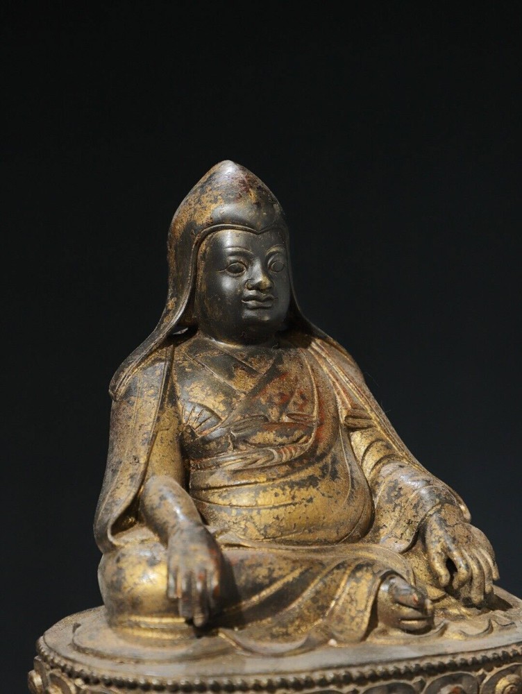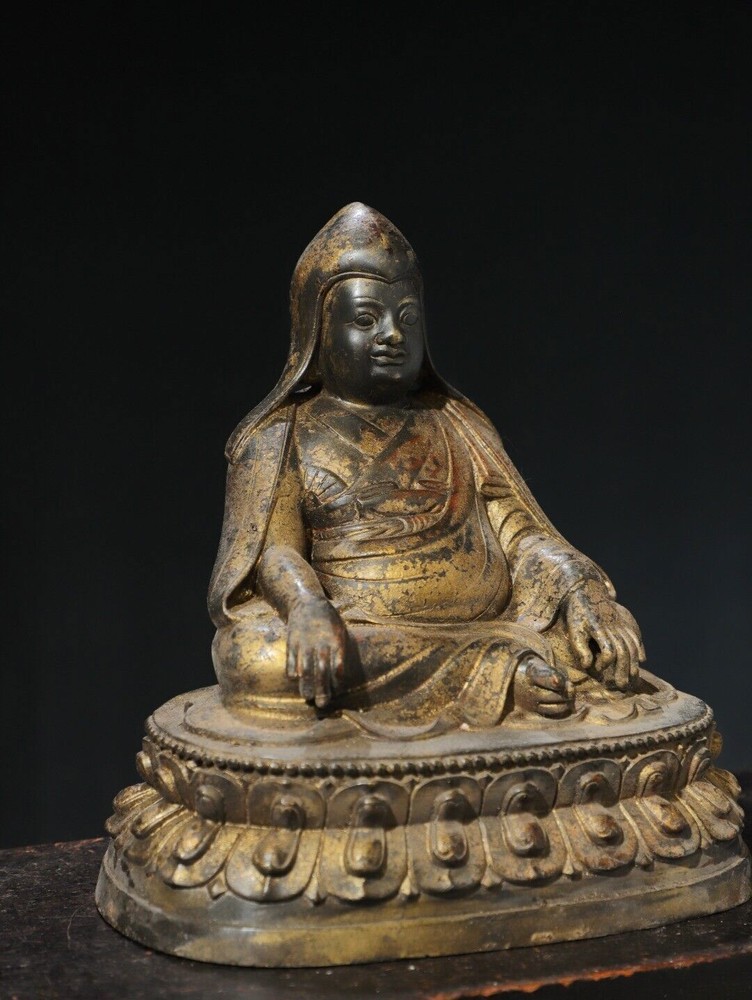 8" China old Tibet Tibetan Buddhism temple Bronze gilt Tsongkhapa Buddha statue