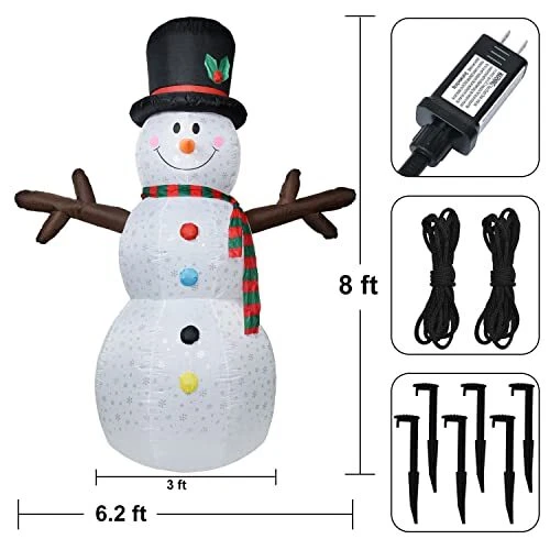 30 Days Return Policy Fast Delivery Trusted seller 8 FT Inflatable Christmas Snowman, 7 Color Rotating Changing Led Lights Xmas Holiday Blow Up Family Party Decoration Yard Lawn Indoor Outdoor Inflatables Product Description ❉??【Large Christmas Inflatable Snowman】8ft inflatable Snowman Holding candy cane in hand say hello to you when you come at the door, it will self-inflates in seconds when the blower works, it also easy to deflate and storage.Inflatable Snowman is biggest and most attractive inflatable Christmas decorations around.e Christmas decorations around. ❉??【Internal Changing LED Lights up the Night】7 Color Internal colorfur LED lights create a glowing nighttime display. Each Inflatable Unit includes built-in lighting for a vibrant effect and enhanced nighttime visibility. ❉??【High Quality Decoration】Made of high quality waterproof polyester with chemical resistant and non-nasty smell, 6FT size Christmas snowman can be used indoor/outdoor. Deflates back down for easy storage for next Christmas. ❉??【Easy Setup and Take-down】Self-inflates in seconds with built-in fan when plugs into standard electrical outlet. Stakes and tethers included for quick and easy setup. ❉??【Perfect for Indoors and Outdoors】Enjoy an excellent Christmas party both at home and outdoor. Great for Christmas Themed Party, Indoor and Outdoor Decorations, or yards Decoration! Shipping Returns Payment Shipping Shipping is FREE to all addresses other than APO/PO boxes in the lower 48 states. All our stock ships from US-based warehouses. Shipped via USPS or UPS (depending on location and package weight) Unless stated otherwise, all orders will ship within 24-72 hours of your payment being processed. Check our feedback to see the great reviews of FAST shipping we offer. Returns As our valued customer, we will do our best to make sure the product you receive arrives to you on time and as expected. If you are not satisfied with your purchase, please contact us within 30 days of receiving your order to process a return. Payment We currently accept payment via eBay managed payments only. Once payment is cleared, we will dispatch your shipment within 1-3 business days. Please refer to the "Shipping" tab for more information regarding shipping speed to your destination.