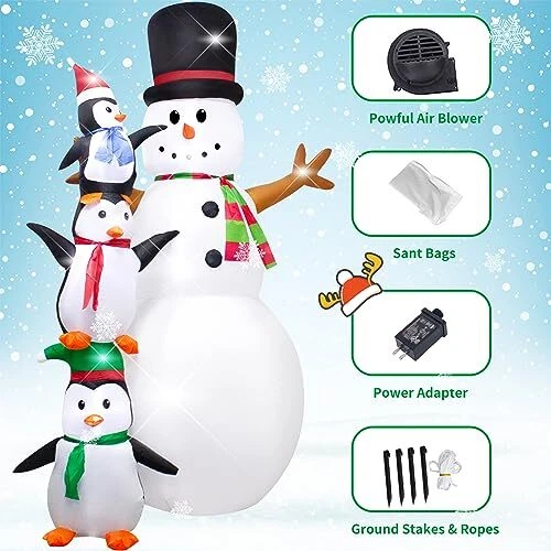 30 Days Return Policy Fast Delivery Trusted seller 8 Foot Christmas Inflatable Snowman Penguin Decoration with LED Lights,Huge Blow up Christmas White Snowman Indoor Outdoor Lighted up Yard Decoration -WM-25 Product Description This inflatable Christmas outdoor decoration is cute and charming, with built-in LED lights and a charming lighting effect that flashes at night to attract the attention of neighbors and children, and make your yard eye-catching at Christmas time Such cute inflatable decor that kids will fall in love with at a glance. This is a great Christmas present. With it, you can enjoy this happy Christmas with your family This high quality inflatable Christmas decoration is easy to install, fast to inflate and easy to store. It includes sandbags, ground piles and rope for easy fixing It is the best inflatable decoration display for Christmas, suitable for indoor and outdoor, such as home, yard, lawn, backyard, garden, party, stage props and other occasions. In addition to being used for Christmas decorations, it can also be used as an everyday garden decoration or other holiday decorations We take customer experience very seriously. If you have any questions, please feel free to leave us a message via "Contact Seller". Our service team will provide you with quality service and help you solve your problems Shipping Returns Payment Shipping Shipping is FREE to all addresses other than APO/PO boxes in the lower 48 states. All our stock ships from US-based warehouses. Shipped via USPS or UPS (depending on location and package weight) Unless stated otherwise, all orders will ship within 24-72 hours of your payment being processed. Check our feedback to see the great reviews of FAST shipping we offer. Returns As our valued customer, we will do our best to make sure the product you receive arrives to you on time and as expected. If you are not satisfied with your purchase, please contact us within 30 days of receiving your order to process a return. Payment We currently accept payment via eBay managed payments only. Once payment is cleared, we will dispatch your shipment within 1-3 business days. Please refer to the "Shipping" tab for more information regarding shipping speed to your destination.
