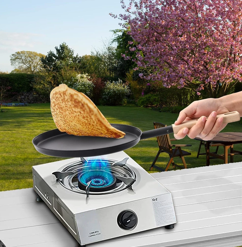 Portable, Lightweight Griddle Pan--- The grill pan is 0.5 pound (230 grams), with a detachable wooden handle. You can easily store the flat pan in your backpack, camping bags and take it on the go. The flat grill pan is ideal for camping, griddle, BBQ, outdoor cooking. 8-inch, Suitable for Many Cooktops, Quick Heat Grill Pan--- Aluminum griddle ensures fast even heating, which saves energy and time. Suitable for various cooktops(including gas stoves, wood burning stoves, grill tops, griddle tops, electric and ceramic cook tops ). (NOT OVEN SAFE) When you are camping, this grill pan will help you cook flavored food. Detachable Wooden Handle, Easy to Store--- The wooden handle is detachable, which is convenient to store, saving space and easily taken out for a picnic or barbecue. The handle is ergonomically riveted to the frying pan skillet so you can have a safe cooking experience without worrying about the handle getting hot. Easy to Clean and Care--- For hand cleaning, wash the grill pan under running water. But please DON'T use wire or metal brushes. Nonstick Flat Surface--- safe griddle pan and is easy to use. In addition to being easy to carry around for camping, this pan also perfect for crepes, tortilla, dosa tawa, toast, pancakes, eggs, omelet, bacon and more Specific Uses For Product Camping, griddle, BBQ, outdoor cooking, crepes, tortilla, dosa tawa, toast, pancakes, eggs, omelet, bacon UPC 631384308453 Brand Name Bodkar Recommended Uses For Product Camping, griddle, BBQ, outdoor cooking, crepes, tortilla, dosa tawa, toast, pancakes, eggs, omelet, bacon Model Name BK-LGB-8in-BT Capacity 0.5 Pounds Color Black Special Feature Gas Stovetop Compatible, Electric Stovetop Compatible Material Aluminum Brand Bodkar 7063940