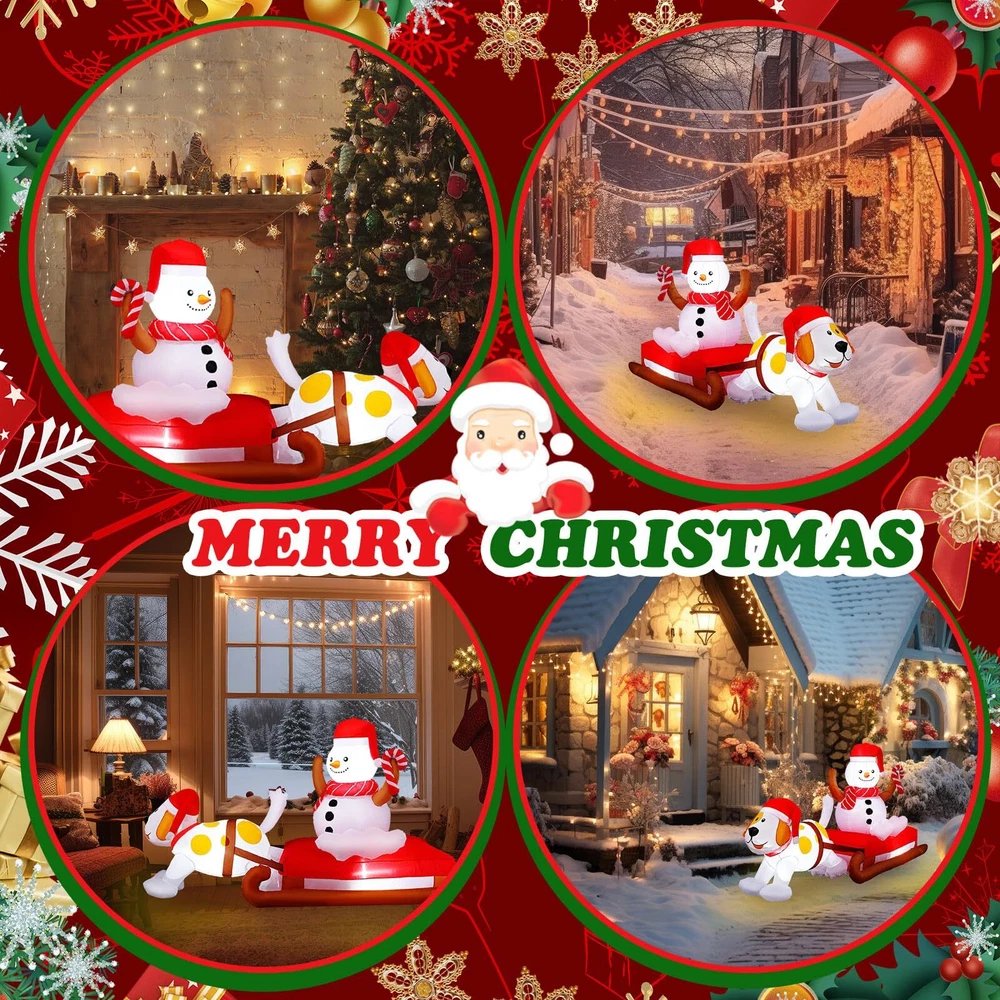 Features: Complete Combination: A full set of outdoor inflatable Christmas decoration installation components is provided. The Christmas inflatable is fixed to the ground with 6 windproof stakes, 2 ropes and 2 sandbags, allowing it to stand without support, no need to worry about it being blown away by the wind. Powerful blower and continuous airflow inflate the Christmas outdoor inflatable toys. Repeatedly durable: The inflatable outdoor holiday decorations are made of high-quality thick, waterproof polyester cloth, no need to worry about being blown away by the wind or damaged by rain. The outdoor inflatable Christmas decorations are durable and can be reused for a long time. Specifications: Material: polyester Color: multicolor Size: about 8 ft (L) Package Includes: 1 x Christmas Inflatables Decoration 1 x Blower 1 x Transformer 2 x ropes 2 x sandbags 2 x buckle 3 x LED light 6 x plastic stakes Notes: Manual measurement, there may be slight size errors. Due to different screen displays, there may be slight color differences. Magical Night Christmas Decoration: this is an 8-foot Christmas inflatable decoration of a puppy pulling a snowman on a sleigh; The puppy and the snowman are wearing red Santa hats, and the snowman is wearing a red scarf; It is cleverly integrated into Christmas, bringing you a lively and warm atmosphere of Christmas, and is loved by children and passers by Bright LED Light Design: the Christmas courtyard inflatable has built-in super bright 3 LED lights, which will make the interesting Christmas inflatable decorations look very real and conspicuous at night, becoming an attractive and decorative courtyard near you, setting off a lively and happy holiday atmosphere Durable Waterproof Material: The inflatable dog pulling snowman is made of 190T waterproof polyester cloth, and the pattern printing uses high-grade ink; Passed European ROHS test certification, waterproof, lightweight, and fade-resistant; Excellent stitching improves the durability of the inflatable outdoor holiday garden decoration Safety Reinforcement and Fast Inflation: equipped with 6 plastic ground plugs and 2 PP ropes and 2 fixed sandbags, it makes it more stable, and there is no need to worry that the Christmas outdoor decorations will fly away with the wind; The equipped fan is made of high-strength ABS plastic, And equipped with a transformer, plug and play, convenient and fast, fast inflation speed, improves your installation convenience and experience Versatile Decoration Options: you can put our outdoor Christmas decoration yard on the front porch, living room, roof, terrace, garden, cafe, restaurant, hotel, shopping mall, party, celebration, to create a fun and memorable Christmas Eve holiday