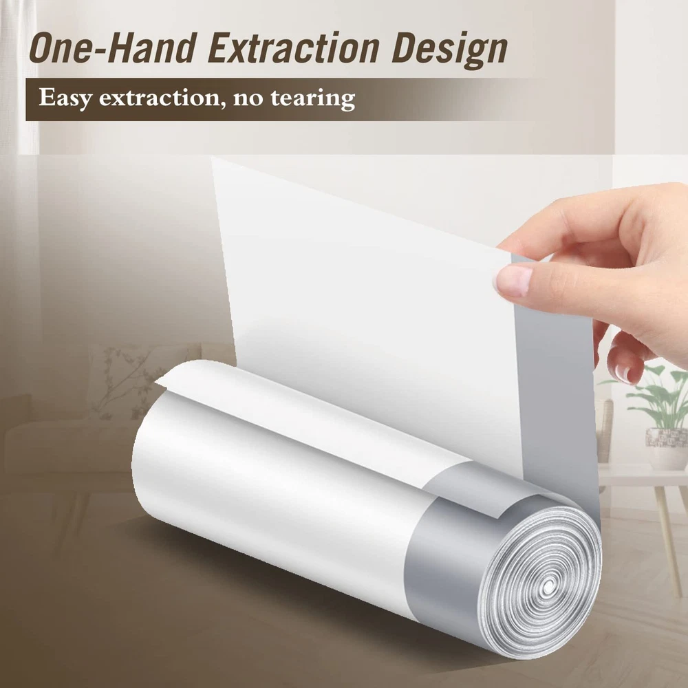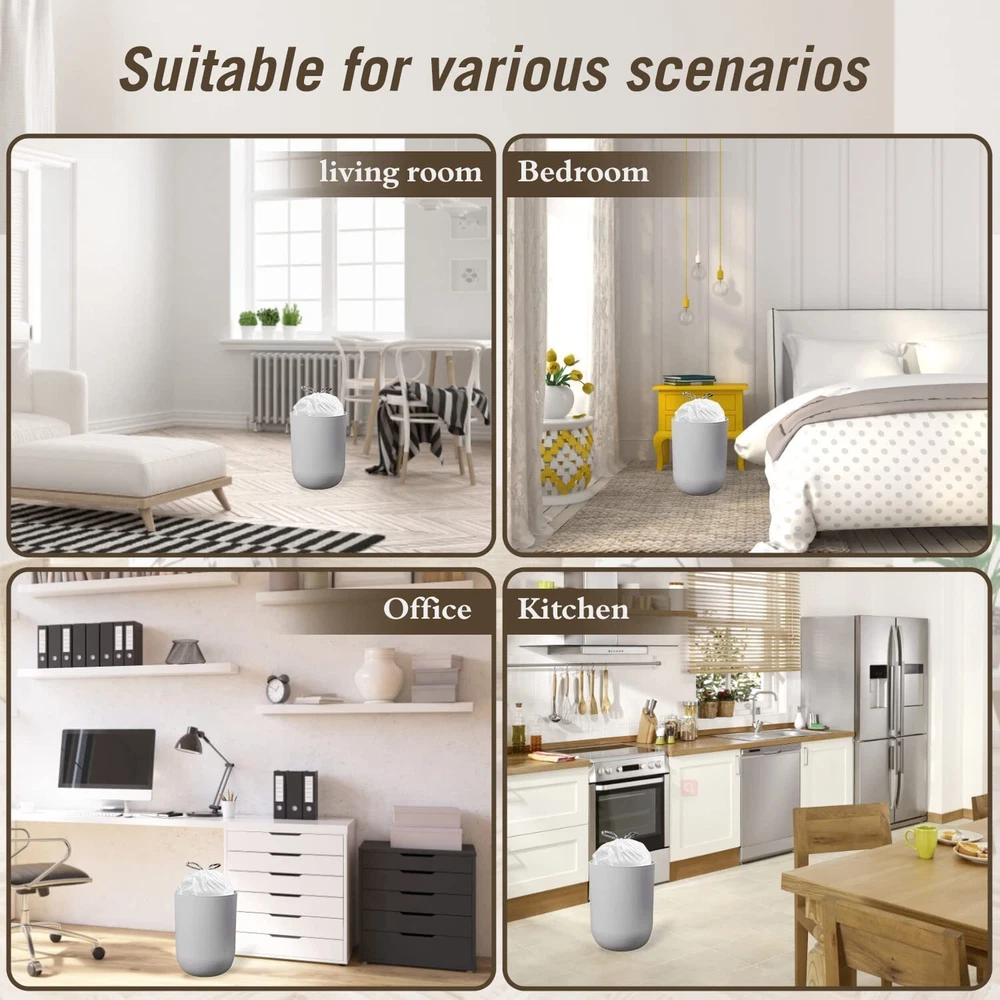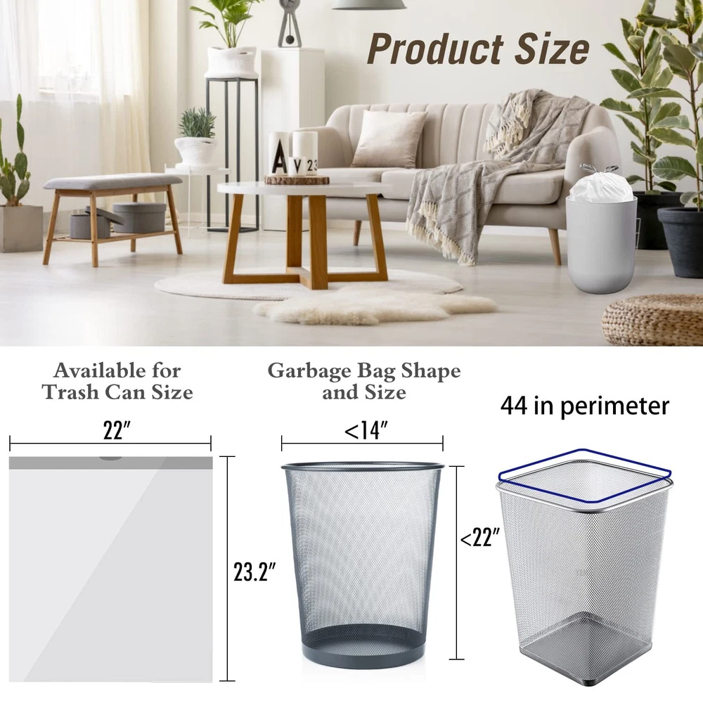 NO TEAR OR LEAK - The trash can liner is durable enough to hold tough trash without tearing or leaking. PREMIUM MATERIAL - Medium trash bag unscented is made of pure HDPE material, no odor, not brittle, more durable and more environmentally friendly. 8 GALLON GARBAG BAGS - White 22" x 23" - 0.74 mils thick, 30Liter, Fits most medium trash cans and is just the right size for car and on-the-go travel. MULTI-PURPOSE - Garbage bags is perfect for medium small trash cans in kitchen, bathrooms, offices, living rooms and bedrooms. CUSTOMER SATISFACTION - If you have any questions and problems, please feel free to us! And we will solve it for you within 12 hours.