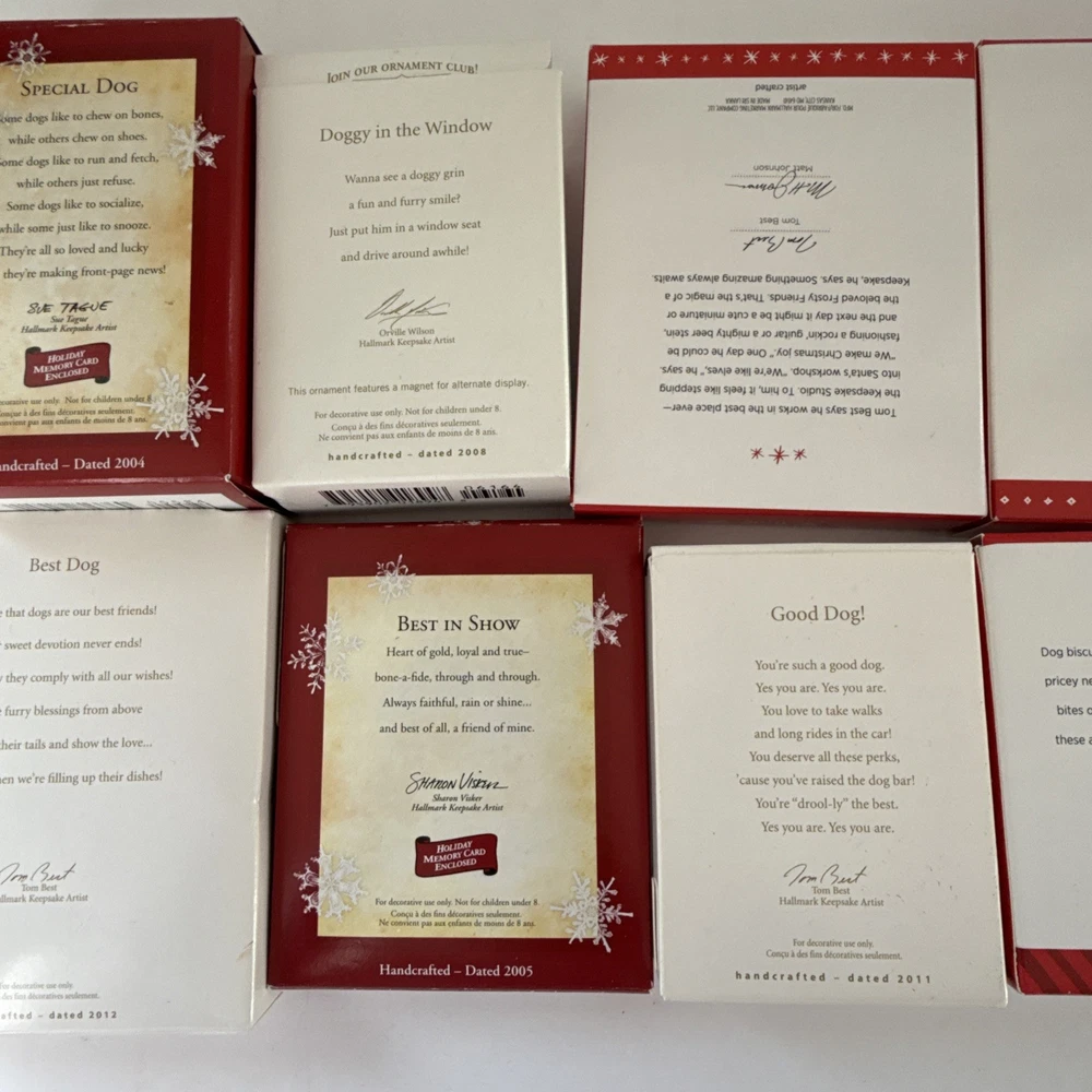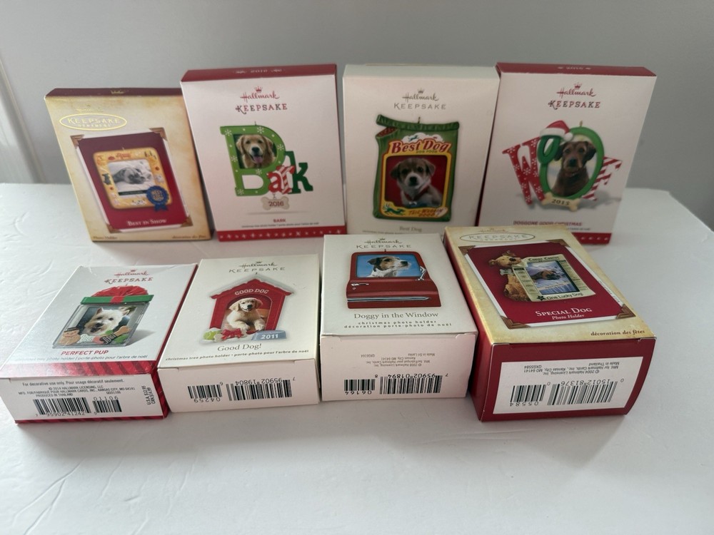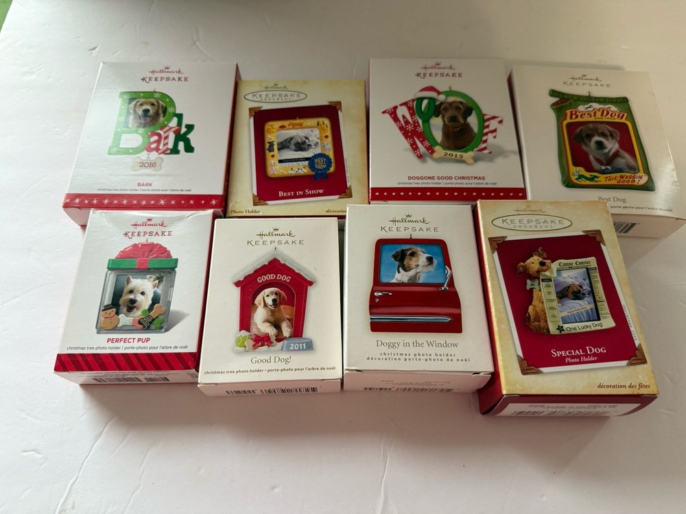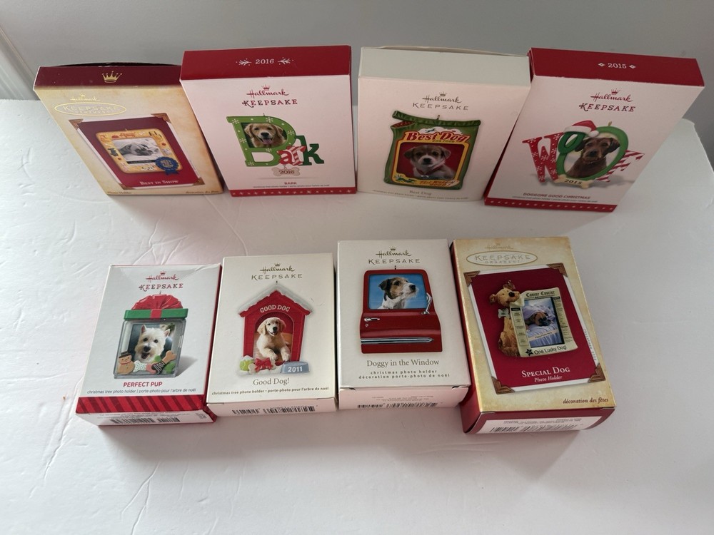 Lot of 8 Hallmark Keepsake Special Dog Photo Holder frame Christmas Ornaments 2004 2005 2008 2011 2012 2014 2015 Good preowned condition. Refer to pictures.