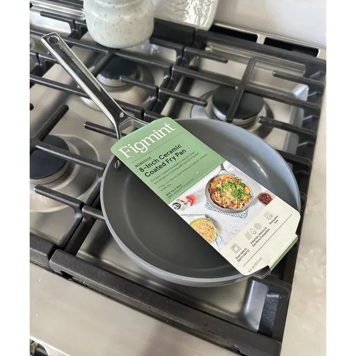 Highlights 8in ceramic frypan in solid hue Smooth, nonstick surface Aluminum construction is ideal for even heat distribution To protect nonstick cooking surface, use only with silicone, nylon or wood cooking utensils Induction, gas and electric stove compatible Dishwasher safe Oven safe up to 500 degrees F Made with no PFOA or PTFE