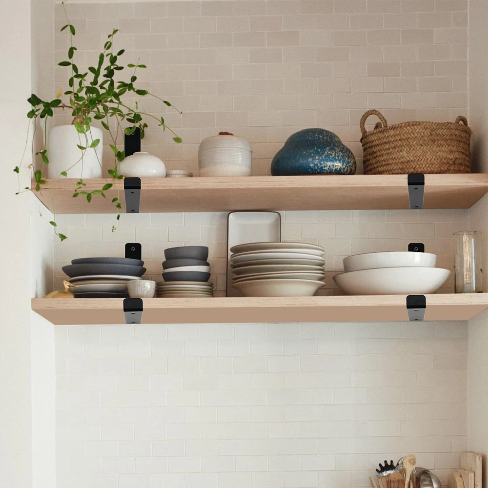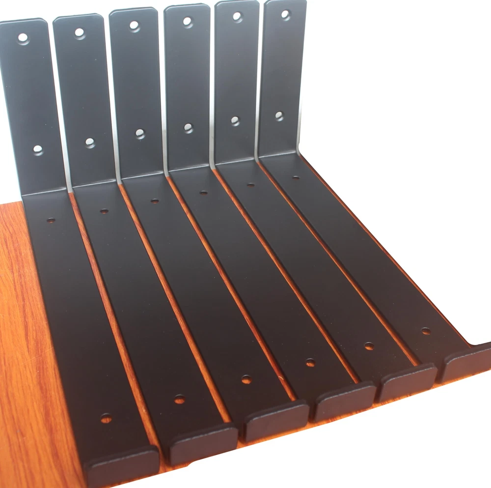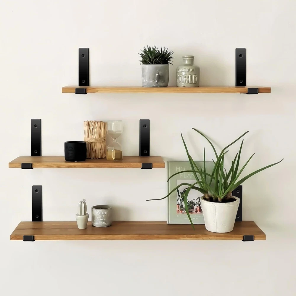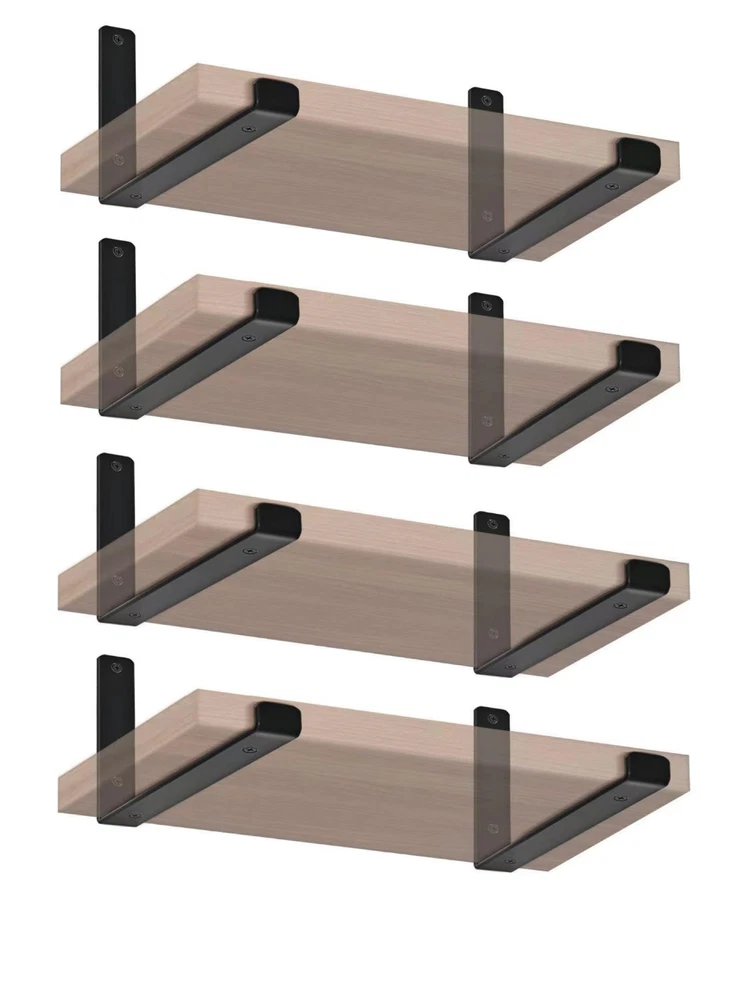 Color:Matte Black Fits common lumber boards: This open shelf bracket set is designed to perfectly fit standard sized 1" x 12" and 2" x 12" lumber boards Package included: 8 x Brackets , 16 x long Screws, 16 x short Screws,(Wood plank is Not included) Perfect DIY shelving: Our floating shelf brackets come with 8 brackets for your wall mounted shelves.Matte black powder coat finish. Creating a rustic look,perfect for your home, office, garage, work space or anywhere else. Heavy duty - 5mm thick, this steel shelf bracket is durable and made to last a lifetime.Our heavy-duty brackets can support Audio Equipment,bookshelf,kitchen ware,electric power tools , TV bench ,farm tools,etc. 8-Pack rustic shelf brackets: Maximize space with with style. Ideal for the kitchen, bathroom, bedroom, office & more.Our shelf brackets can be used as exhibition stand,bicycle stand,garden shelf, kitchen shelf,office shelf,etc Easy to Install design using basic DIY Tools. Easily mount your favorite shelves in your garage, home, office, bathroom, kitchen, living room, dining room, bedroom