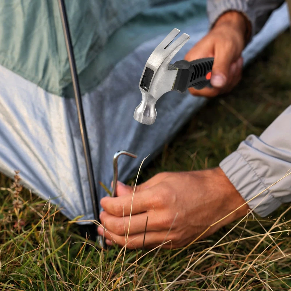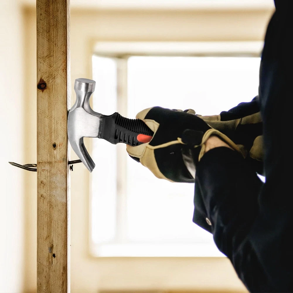 hammer set include 8 pack of small hammer, each measuring 6" Lx 4" W, the proper mini size is easy to fit into in tool bag or work clothes, convenient to carry and use. Our mini hammers are constructed of strong carbon steel, which has superior strength and toughness, very sturdy and durable. With fine polished, they are corrosion and rust-resistant. The handle of the claw hammer is covered with TPR material, anti-slip, and comfortable to hold. You can use ends of the tiny hammer to drive and pull nails easily. The hammer end has strong striking power, suited for most household projects. The claw end generates maximum nail-pulling leverage, helping you pull the nails without effort. These short hammers will be your good helper in woodworking, DIY, outdoor camping activities, home repair, and so on. hammer set include 8 pack of small hammer, each measuring 6" Lx 4" W, the proper mini size is easy to fit into in tool bag or work clothes, convenient to carry and use. Reliable Material: Our mini hammers are constructed of strong carbon steel, which has superior strength and toughness, very sturdy and durable. With fine polished, they are corrosion and rust-resistant. Ergonomically Designed Handle: The handle of the claw hammer is covered with TPR material, anti-slip, and comfortable to hold. This curved design and the texture increase grip strength and reduce fatigue, giving you a nice use experience! Functions: You can use ends of the tiny hammer to drive and pull nails easily. The hammer end has strong striking power, suited for most household projects. The claw end generates maximum nail-pulling leverage, helping you pull the nails without effort. Perfect Stubby Hammer: These short hammers will be your good helper in woodworking, DIY, outdoor camping activities, home repair, and so on, making your job easy!