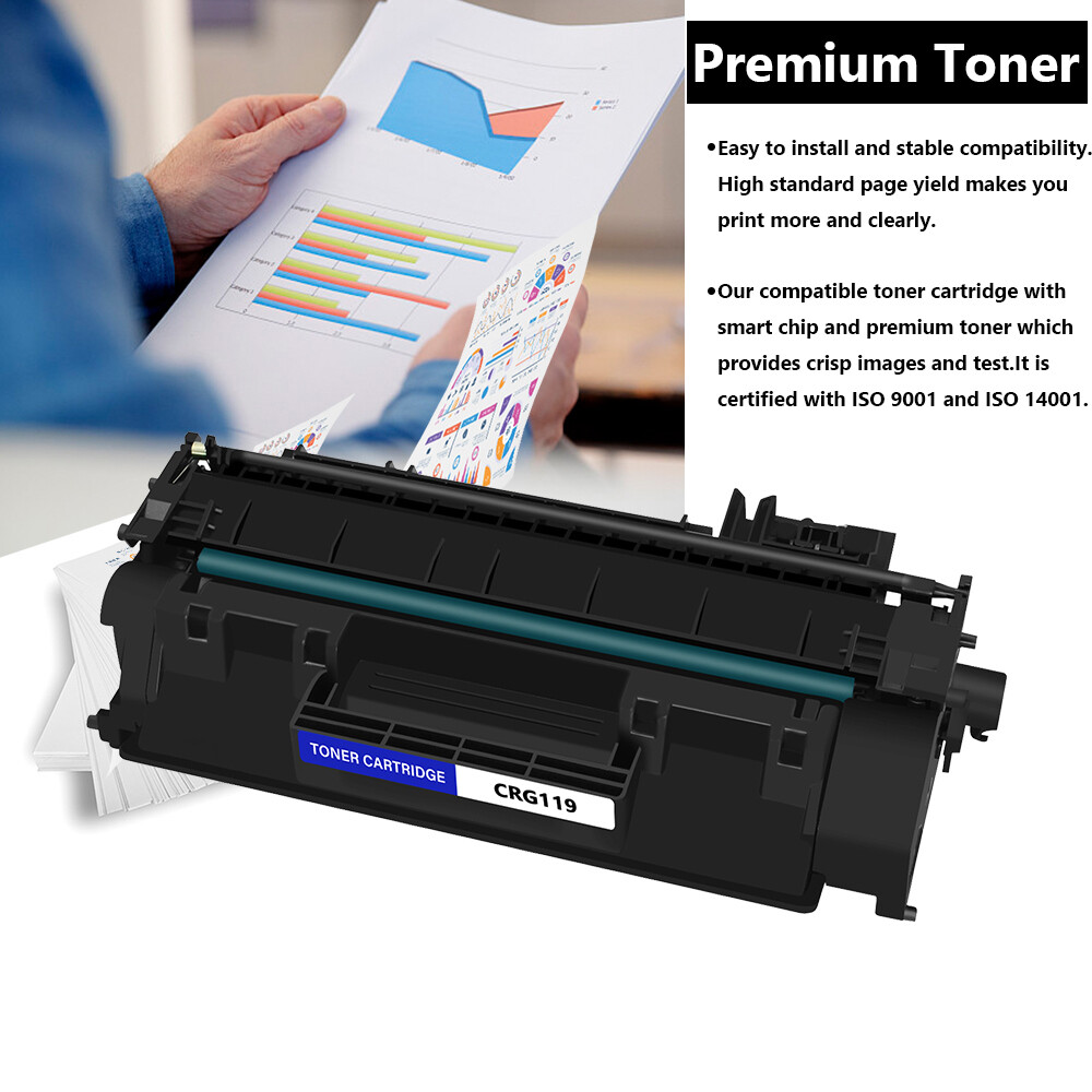 It is certified with ISO 9001 and ISO 14001 Item:Brand New Premium Compatible For Canon 119 CRG119 Toner Cartridge Model: CRG119 Color:Black Shelf Life:2 Years Printed Pages:2,300 Pages/black (based on up to 5% coverage) Compatible Printer models Lists: For Canon Printers Canon ImageClass Printer ImageClass LBP6300dn LBP6650dn ImageClass LBP6670dn MF5850dn ImageClass MF5880dn MF5950dw ImageClass MF5960dn MF6160dw ImageClass MF6180dw Canon i-SENSYS Printer i-SENSYS LBP6300dn LBP6310dn i-SENSYS LBP6650dn LBP6670dn i-SENSYS LBP-6680x MF5840dn i-SENSYS MF5940dn MF5980dw i-SENSYS MF6140dn MF6180dw Attention Please Please kindly contact us if your printer model is not listed out. 8 Pack CRG119 Black Toner for Canon 119 i-SENSYS MF6140dn MF6180dw Printer Model CRG119 Color Black Page Yield 2,300 pages at 5% Coverage (4A Paper) Warranty 2 Years Condition Brand New ( It is certified with ISO 9001 and ISO 14001 ) Compatible for Printers Listed Below: Canon ImageClass Printer ImageClass LBP6300dn LBP6650dn LBP6670dn ImageClass MF5850dn MF5880dn MF5950dw MF5960dn MF6160dw MF6180dw Canon i-SENSYS Printer i-SENSYS LBP6300dn LBP6310dn LBP6650dn LBP6670dn LBP-6680x MF5840dn i-SENSYS MF5940dn MF5980dw MF6140dn MF6180d Fast and Safe Shipping Reliability on the Move, Safety in Transportation. Print Effects Clear / Sharp / Vivid At Your Service Anytime Available to help you anytime. Please contact us through eBay messages.
