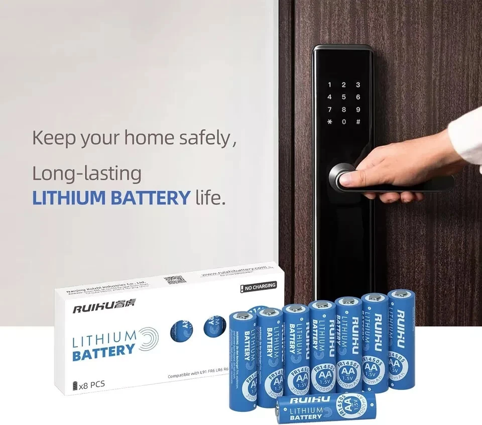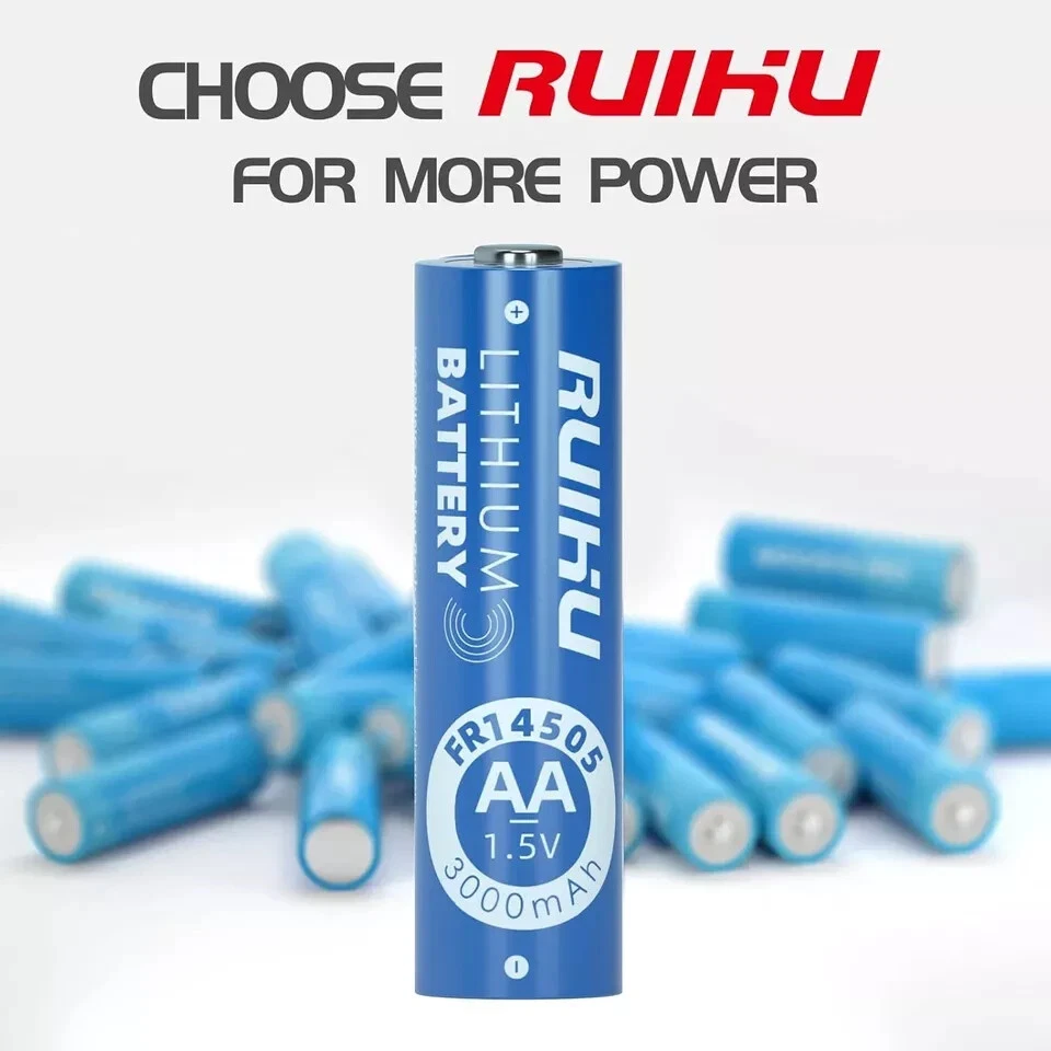 8 Pack Extended Long-Lasting Lithium Batteries for Blink Camera - 1.5V 3000mAh šćWarning & Caution!ćDo Not Recharge! This is a Non-rechargeable battery. šćWork with Blink CameraćThe Original batteries provided in Blink camera package are Energizer Lithium AA batteries(model: L91). Our RUIHU AA lithium batteries is same as Energizer AA lithium batteries, and they both are Li-FeS2 batteries. šćBasic Paramatersć8-Pack RUIHU AA Safe Lithium Battery 1.5V 3000mAh; 20 years shelf life with very very low self-discharge rate(<2% per year); Standard AA size with wide application. šćLong-Lasting & DurablećRUIHU AA Lithium Battery has high performance and constant output, using high-density materials to accumulate amazing energy. šćWide ApplicationćApplied for various devices, such as Clock, Camera flash, Remote controllers, Mouse, Keyboard, Radio, Baby toys, Toy car, Digital cameras, Smart door lock, Electronic toothbrush, Wireless microphone, LED flashlight, Emergency lamp, Cassette recorder, VR controller, Game controller... šćGood CompatibilityćCan replace various AA batteries, such as Alkaline batteries, Carbon batteries, NI-Mh batteries, NI-Cd batteries. Compatible with L91, FR6, LR6, R6, E91, AM3, LFB-AA, FR14505...Perfect for both high and low drain devices. šćNo LeakagećTriple safety valve, new spiral winding structure, the electrolyte is fully adsorbed to prevent leakage;Ruihu AA batteries escorts your high-end electronic equipment. šćAdapt to extreme temperaturesćWorks perfectly in extreme environments from -40ā to 140ā. Its cold resistance surpasses alkaline batteries and Ni-MH batteries, and is suitable for both outdoor and indoor use. šćSuper Innovative BatteyćRUIHU AA lithium batteries adopts new technology and unique Li-FeS2 material to keep the battery super long-lasting. The batteries show no memory effects and keep 1.5v constant discharge in 3000mah lithium cell. Item Specification Item model number AA Unit Count 8.0 Count Battery Cell Composition Lithium Product Dimensions 0.57 x 0.57 x 1.99 inches Country of Origin China Item Weight 4.7 ounces Batteries 8 Lithium Metal batteries required. (included) Recommended Uses For Product Indoor/Outdoor Number of Batteries 8 Lithium Metal batteries required. (included) Size Lithium AA-8 Count/Box