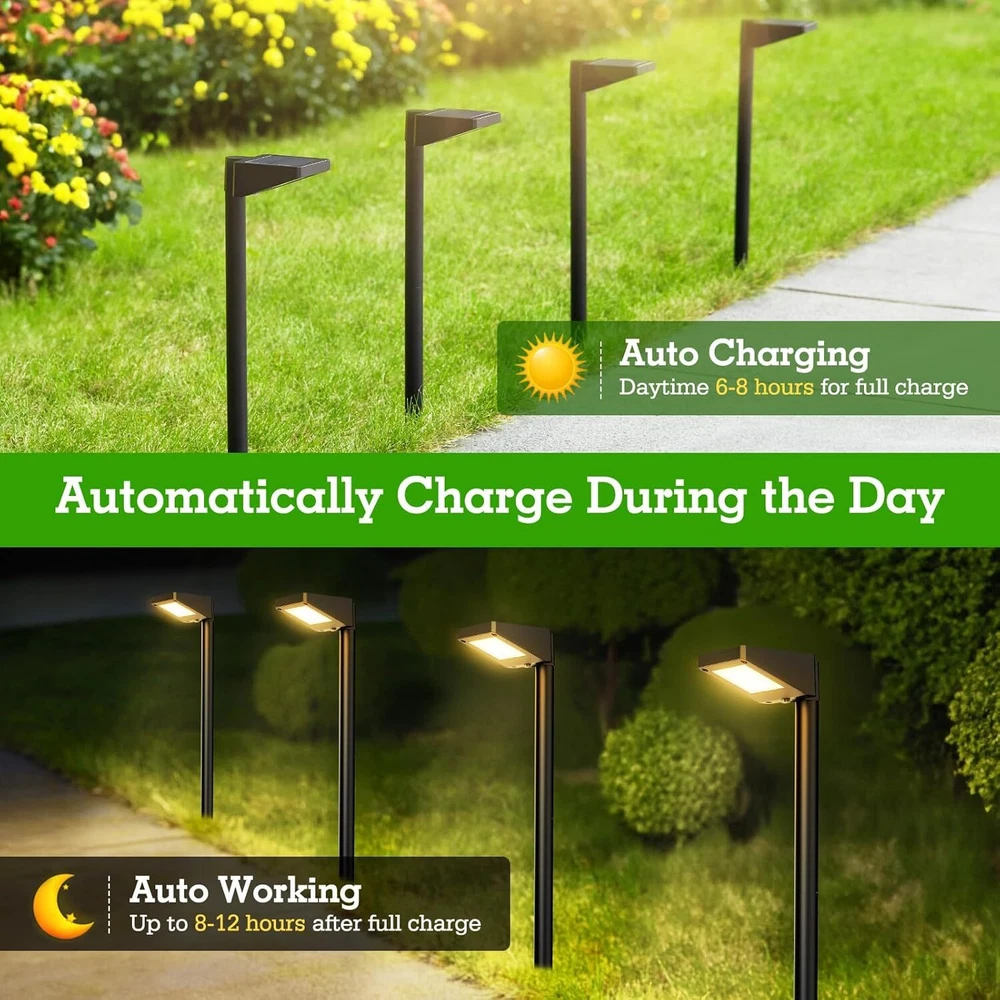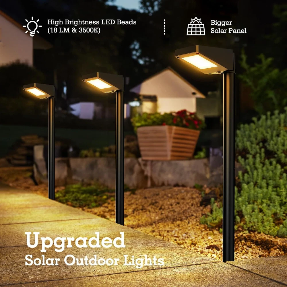 1. These solar pathway lights are fantastic! They add a warm, inviting glow to my garden and driveway. Super easy to install—no wiring needed—and the upgraded LEDs are noticeably brighter than my old ones. The modern black design looks sleek, and they charge well even on cloudy days. Great value for an 8-pack! The flickering flame solar balls are a fun bonus too. Highly recommend!