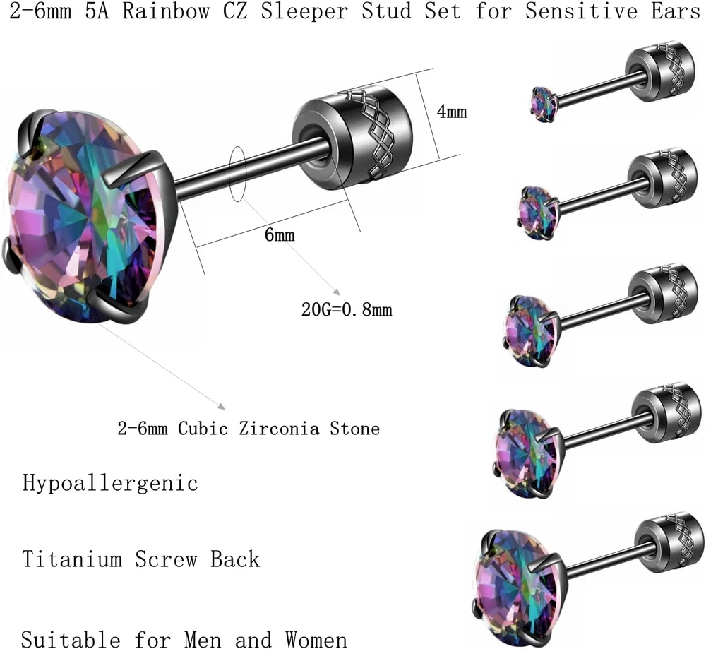 Store New Arrivals Add to Favorite View Feedback Contact 8 Pairs Titanium Flat Back Studs for Women Men,316L Surgical Stainless Steel Huggie Hoop Earrings Rainbow 5A Cubic Zirconia Helix Lobes Hinged Cartilage Piercing Sleeper Jewelry Set Description Metal stamp 14K Gem Type Cubic Zirconia Color Black-Rainbow cz Material Stainless Steel Metal Stainless Steel Setting Post Department unisex-adult Back finding Screw Back Package Dimensions 3.78 x 2.99 x 0.71 inches; 0.02 ounces Product Description Cartilage Piercing Jewelry Set Hypoallergenic for Sensitive Ears AAAAA+ Rainbow CZ 316L Surgical Stainless Steel Huggie Hoop Earrings Various color combinations The video showcases the product in use. The video guides you through product setup. The video compares multiple products. The video shows the product being unpacked. Titanium Screw Back Colorful Earrings,Classic unisex earrings. Good choice for daily wear and special occasion Black Huggie Hoop 8mm/10mm/12mm 316L Surgical Stainless Steel Rainbow Black Studs 2-6mm ZQGOFPT is a young brand,but devoting to develop fashion and fine jewelry products and good at selling Surgical Stainless Steel and Cubic Zircon jewelry.Hope you can find your favorite jewelry in ZQGOFPT add to your wardrobe or chose the best gift to someone you love. 8 Pairs Fashion Earrings Sleep Stud for Men Women Multi-Color for Daily Wear Knurled Screw Back Double Sided CZ Stud Earrings Size--Diamond Size:6mm. Earring Post Gague:20G(0.8mm).Post Length:6mm(1/4 in).Screw back also with tiny CZ,Can wear double side. Double Sided Design Economical pack.Come with 5pairs stud earrigs(2/3/4/5/6mm)&3pairs hoop earrings(8/10/12mm).Mor eye-catching in many ear holes. Lightweight Made of high quality titanium stainless steel, lead and nickel free, gentle on sensitive skin. The screw back stud earrings are inlaid with AAAAA+ cubic zirconia, excellent cut, brilliant fire and high clarity.Super light elegant hoop earrings,Great for all day comfort like you've never wore. Is the product hypoallergenic? Yes(All made of titanium alloy and surgical stainless steel) Can it be worn while sleeping or in the shower? Don't worry about hurting yourself, this product is designed Can it be worn for a long time? No problem at all, with a spiral back, it is firm and not easy to fall off Will the product fade? Using electroplating process, not easy to fade ABOUT US We offer the best prices around on high quality products. Our E-store includes media such as books, movies, music and games while offering electronics, toys, sporting apparel, clothing, tools, general home, garden items and more. SHIPPING We are always working hard to ensure your package arrives as soon as possible. Please understand that some factors like weather, high postal traffic, and the performance of shipping companies are outside of our control. We offer free shipping to the lower 48 states and ship within 2 business days of payment, usually sooner. We do not accept P.O. Boxes. Please provide a physical address. For shipping outside of the continental USA, we only use eBay's Global Shipping Program.The item is shipped to KY and then sent to the rest of the world. International customers are responsible for all duties and taxes. Continue to check out in order to calculate costs for shipping the item to your country. Messages regarding eBay's Global Shipping Program MUST be directed at eBay EXCLUSIVELY. RETURNS We offer a 30-Day Return Policy on items which you are not completely satisfied with. You have the option for a full-refund or an exchange of the item. No returns are available on items shipped outside of the USA. PAYMENT We accept PayPal. CONTACT US This page content is yet to come Please ad us to your favorite seller and visit again later Thank You CUSTOMER SATISFACTION We try our very best to make sure every customer is completely satisfied. If there's a problem, message us! We're happy to help. WE ACCEPT Copyright © 2021 AutoDS. | All Rights Reserved