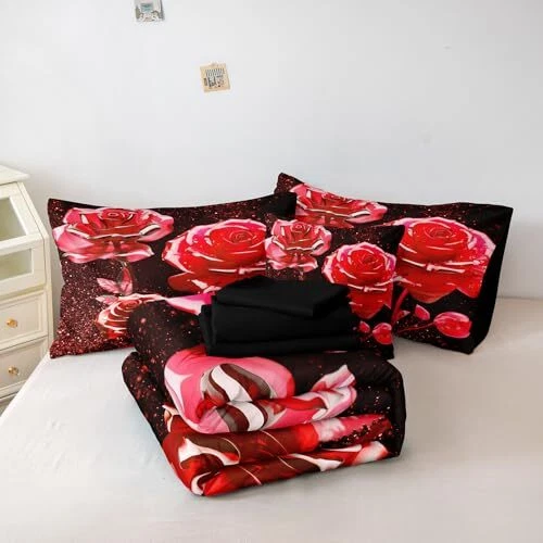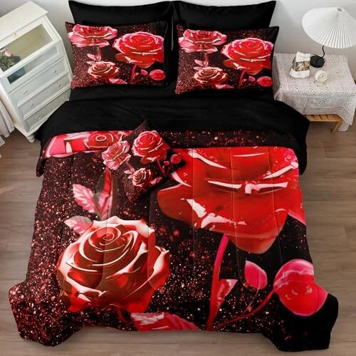 Menu 1. We require immediate payment. 2. We currently accept payment via eBay managed payments only. 3. Once payment is cleared, we will dispatch your shipment within 1-3 business days. Please refer to the "Shipping" tab for more information regarding shipping speed to your destination. 8 Pcs Bed in a Bag Red Rose Comforter Set Queen Size Rose Flower Bedding Set Romantic Love Valentine Bedding Comforter Set Product description 8PCS ROSE QUEEN BED IN A BAG - 1 comforter 90*90, 2 rose pillowcases 20*30, 1 solid flat sheet 90*104, 1 solid fitted sheet 60*80 ,2 solid pillowcases 20*30 and 1 rose cushion cover 18*18. STUNNING DESIGN - Elevate your bedroom decor with this floral comforter set. The rose pattern create a vibrant nature. Sleeping under the comforter set should feel very reassuring, and the special pattern design will become the most special gift for friends to give. Perfect for holidays, birthdays, or New Year's, it's sure to impress and transform any space. GREAT GIFT - This comforter set adopts a special printing design, it is the perfect classic decoration for children, boys, and girls' bedrooms, adding freshness to the room decoration. It is also an ideal gift for family and friends. EXCEPTIONALLY SOFT & COZY -This comforter set is made of high-quality microfiber and is equipped with fashionable stitching to prevent the filling from clumping or shifting. It is lightweight, breathable, comfortable, and durable, without putting pressure on the body. It can enjoy good sleep all night, suitable for all seasons. EASY CARE - It is recommended to gently cycle machine wash separately in cold water. For long-lasting use, please do not bleach or soak for a long time. Warm Tips: Owing to be packaged on a small package, it might be some wrinkles when you receive it. You can put it in the dryer on low heat to help take the wrinkles and will come out fluffy. PLEASE MESSAGE US IF YOU HAVE ANY OTHER QUESTIONS, AND MANY THANKS FOR READING ALL OF THIS. Copyright ©#. All Rights Reserved.