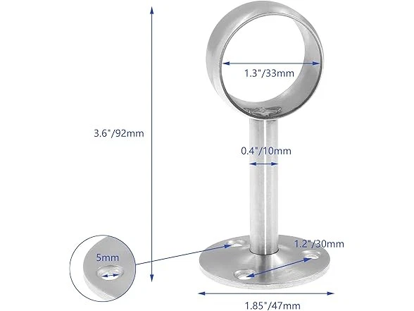 8 Pcs Ceiling Mount Curtain Rod Bracket Condition: New Color: Brushed Finish Size: 1-1/4 Inch Features ★ Check Size First: Ceiling mount closet rod holders can fix round rods up to 1-1/4”/32mm in diameter. The shortest distance from the ceiling to the pole is 2.16”/55mm. The loading capacity is up to 20 pounds for per bracket. ★Quality Materials: Curtain rod socket constructed of heavy duty stainless steel with the matte black surface for sturdy, durable, anti-rust and anti-corrosion. Although you put it in a humid place, it still maintains wonderful flexibility over time. ★ Triangle Design: Each curtain rod bracket has 3 holes at the same distance, which are connected like a triangle to make it more stable and firm. ★ A wide range of applications: Flange rod brackets is suitable for closet storage rod, ceiling mount curtain rod, shower rod, clothes rod, hanging rod and etc. ★About Us: Our store commits to providing exceptional hardware products. We firmly believe that quality is the foundation of success. That's why we strive to offer meticulously designed and reliable products to meet your various needs. Thank you for your interest and support! Specs In the Box: (1) 8 Pcs Ceiling Mount Curtain Rod Bracket