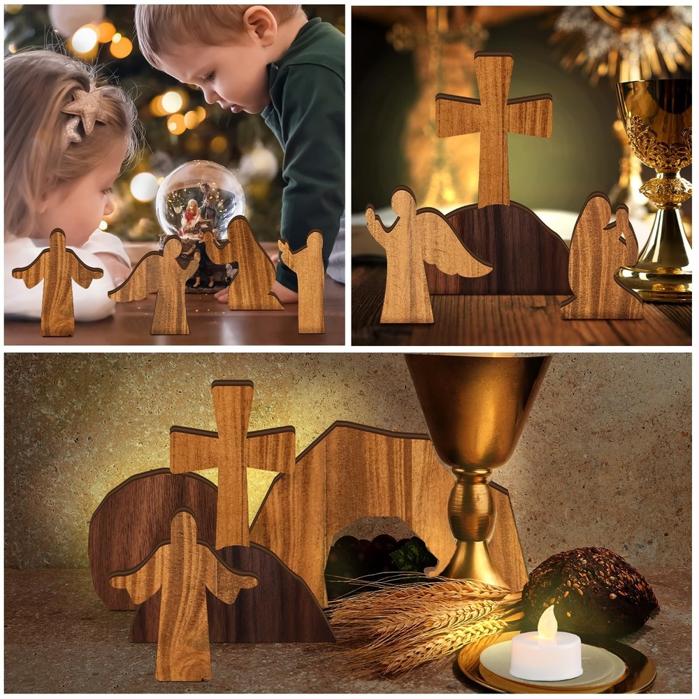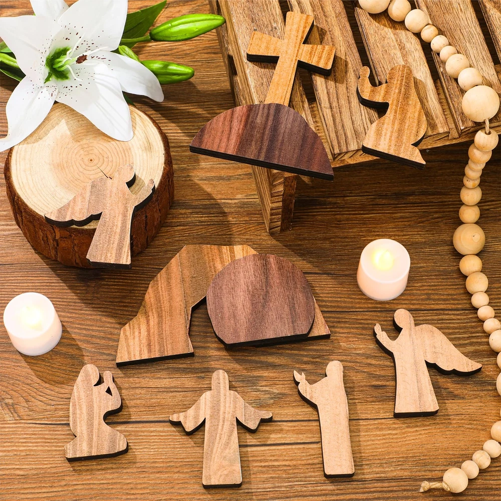 Features: If you're looking for a present that signifies the spirit of Easter, then look no further. the Easter religious decorations illuminate the key elements of the resurrection theme. Specifications: Material: main wood Color: wood color Size: as pictures shown Package includes: 8 x Easter religious decorations Notes: Manual measurement, please allow slight errors on size. The color may exist a slight difference due to different screen displays Easter Decor: you will receive 8 pcs Easter jesus symbols, ideal symbols for your Easter home decoration, exquisitely handmade and full of Christian resurrection meaning and atmosphere(excluding lights). Reliable Material to Use: the Easter resurrection scene sets are made of quality wood, feature simple and classical appearance, strong and reliable, not easy to break or deform, well polished and won't scratch your hands or furniture, so you can choose them with confidence Festival Highlight: The wooden resurrection scene set is a premium addition to your Easter home decorations , placing it on window sill, shelf, fireplace, or dining table, and making your bedroom, living room, or kitchen full of festive ambiance Trustworthy Quality for You: crafted from quality wood, this Easter scene wooden decoration is as robust as it is symbolic; The wooden material not only adds durability but also exhibits a rustic charm Meaningful Ways to Apply: these empty tomb Easter scene decorations are suitable for multiple locations in your home; Whether it's your living room centerpiece, mantelpiece, or dining table decor, these Easter pieces are a wonderful addition to your Easter decoration
