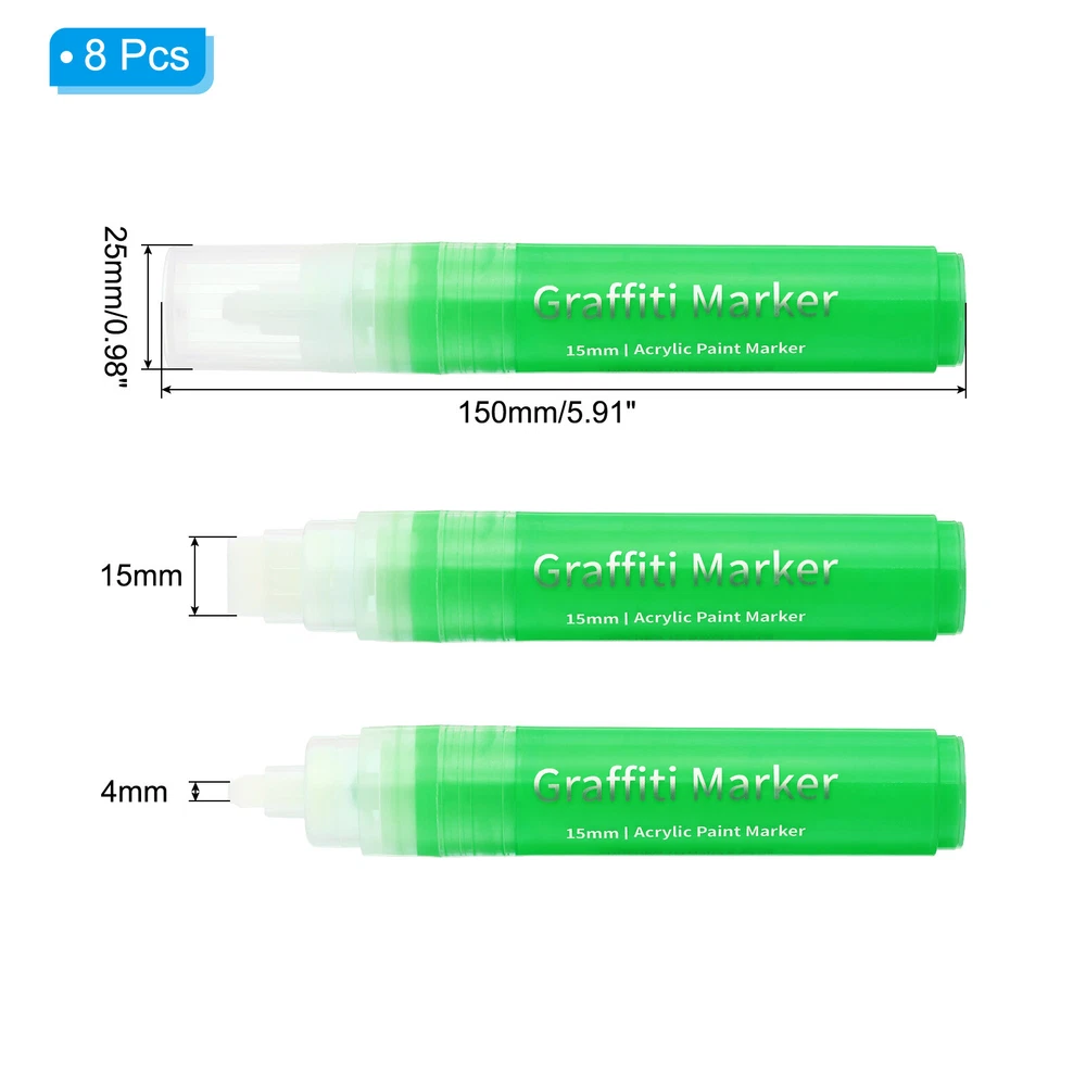 8 Pcs Graffiti Markers, 15mm Green Poster Markers Thick Acrylic Paint Pen