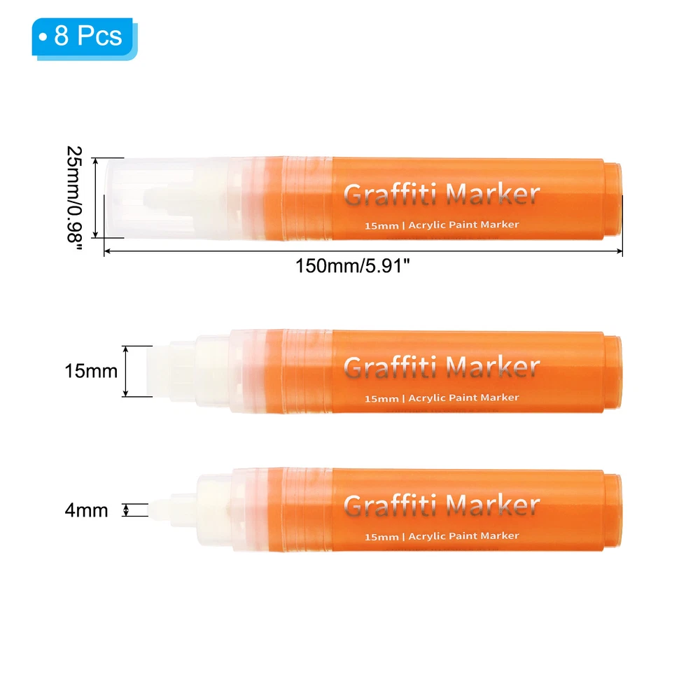 8 Pcs Graffiti Markers, 15mm Orange Poster Marker Thick Acrylic Paint Pen