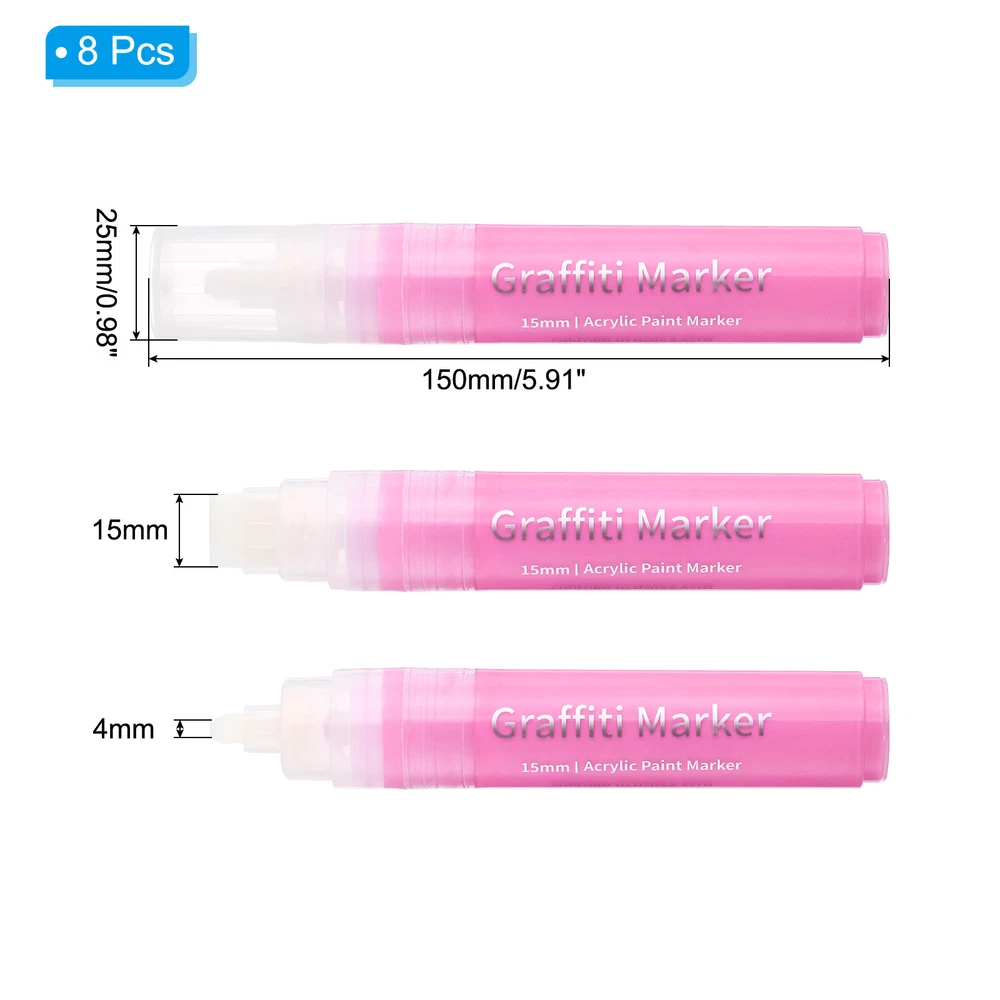 Document The various thick markers are vibrant brightly colored and suitable for DIY design, arts and craft projects. Can be used on rock painting, paper, posters, signs, canvas, wood, metal, walls, glass, clothes, ceramics, murals, stone, mug, plastic, 3d prints, DIY crafts art supplies and a variety of surfaces. Can be given as a gift to artists, graffiti enthusiasts, craftsmen, designers, etc.Specification: material: plasticSize: 15x2.5cm / 5.9x1 inchPen size: 15x4mm / 0.59x0.16 inchAdvantage: The thick acrylic paint markers are brightly colored, easy to use, dry quickly, and work well even on dark paper. The 15mm thick felt tip marker large areas evenly and smoothly without skipping or breakage. The paint flows well with no extra drips and pool, making it perfect for creating larger pieces of art.Instruction: 1. You need to shake the ink well before use, and then press the top firmly until the white tip is filled with color paint. 2. Press gently when writing to help the ink flow. Acrylic paint dries and can be left on a variety of surfaces. 3. It can be cleaned or wiped with water when it is wet.NOTE: Once the permanent marker is activated, secure the cap when not in use and keep the marker tip up at all times. 8 Pcs Graffiti Markers, 15mm Pink Poster Marker Thick Acrylic Paint Pen The various thick markers are vibrant brightly colored and suitable for DIY design, arts and craft projects. Can be used on rock painting, paper, posters, signs, canvas, wood, metal, walls, glass, clothes, ceramics, murals, stone, mug, plastic, 3d prints, DIY crafts art supplies and a variety of surfaces. Can be given as a gift to artists, graffiti enthusiasts, craftsmen, designers, etc. Specification: material: plastic Size: 15x2.5cm / 5.9x1 inch Pen size: 15x4mm / 0.59x0.16 inch Advantage: The thick acrylic paint markers are brightly colored, easy to use, dry quickly, and work well even on dark paper. The 15mm thick felt tip marker large areas evenly and smoothly without skipping or breakage. The paint flows well with no extra drips and pool, making it perfect for creating larger pieces of art. Instruction: 1. You need to shake the ink well before use, and then press the top firmly until the white tip is filled with color paint. 2. Press gently when writing to help the ink flow. Acrylic paint dries and can be left on a variety of surfaces. 3. It can be cleaned or wiped with water when it is wet. NOTE: Once the permanent marker is activated, secure the cap when not in use and keep the marker tip up at all times. Hot Item Payment 1.We accept eBay payment . 2.Payment must be received within 7 business days of auction closing. Shipping 1.We ship to your eBay or Paypal address. Please make sure your eBay and Paypal address is correct before you pay. 2.Items will be shipped within 1-3 business day when we received payment. 3.Delivery time depends on destination and other factors. Description Policy 8 Pcs Graffiti Markers, 15mm Pink Poster Marker Thick Acrylic Paint Pen The various thick markers are vibrant brightly colored and suitable for DIY design, arts and craft projects. Can be used on rock painting, paper, posters, signs, canvas, wood, metal, walls, glass, clothes, ceramics, murals, stone, mug, plastic, 3d prints, DIY crafts art supplies and a variety of surfaces. Can be given as a gift to artists, graffiti enthusiasts, craftsmen, designers, etc. Specification: material: plastic Size: 15x2.5cm / 5.9x1 inch Pen size: 15x4mm / 0.59x0.16 inch Advantage: The thick acrylic paint markers are brightly colored, easy to use, dry quickly, and work well even on dark paper. The 15mm thick felt tip marker large areas evenly and smoothly without skipping or breakage. The paint flows well with no extra drips and pool, making it perfect for creating larger pieces of art. Instruction: 1. You need to shake the ink well before use, and then press the top firmly until the white tip is filled with color paint. 2. Press gently when writing to help the ink flow. Acrylic paint dries and can be left on a variety of surfaces. 3. It can be cleaned or wiped with water when it is wet. NOTE: Once the permanent marker is activated, secure the cap when not in use and keep the marker tip up at all times. Hot Item Payment 1.We accept eBay payment . 2.Payment must be received within 7 business days of auction closing. Shipping 1.We ship to your eBay or Paypal address. Please make sure your eBay and Paypal address is correct before you pay. 2.Items will be shipped within 1-3 business day when we received payment. 3.Delivery time depends on destination and other factors.