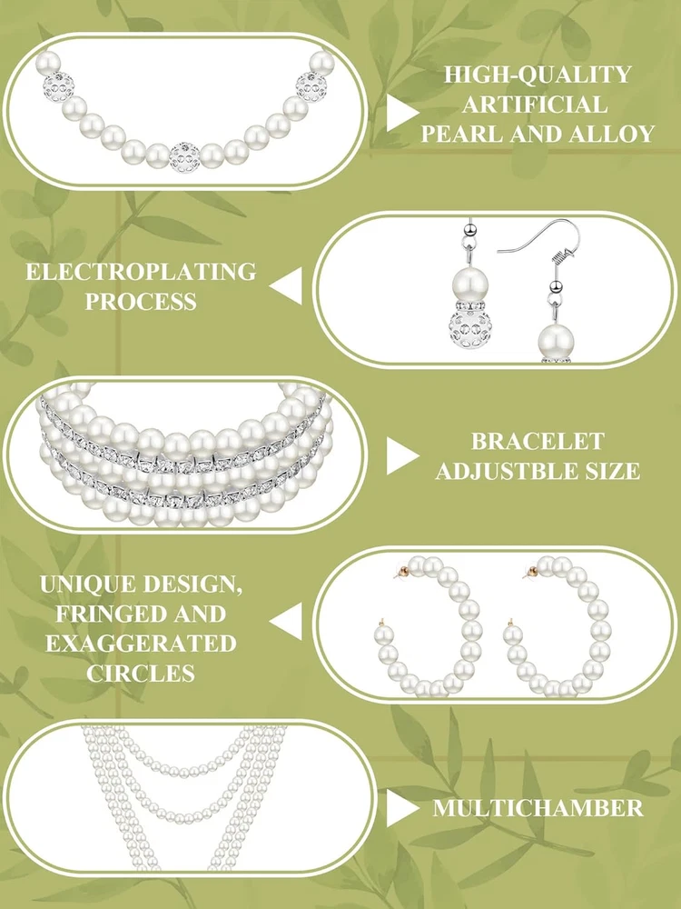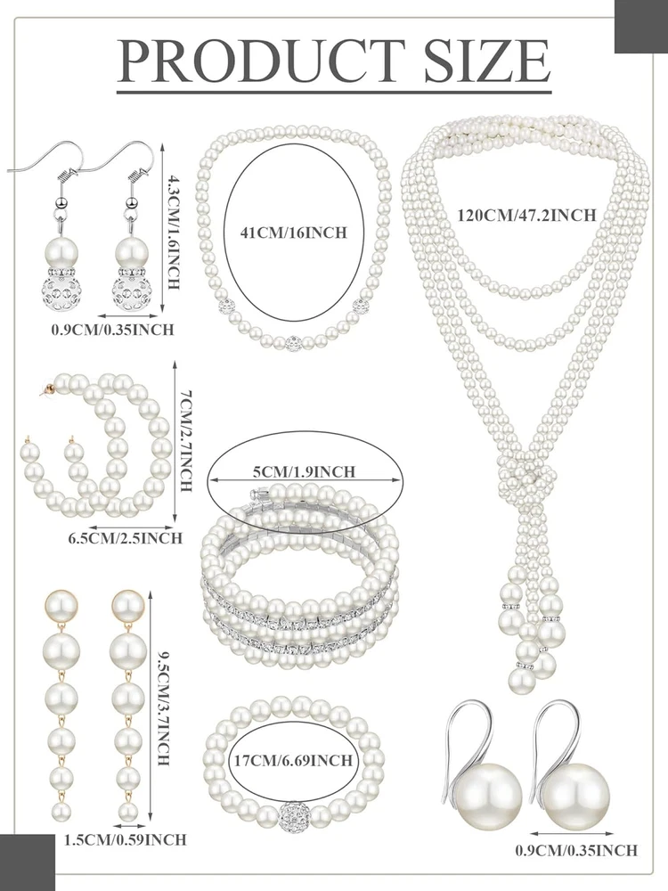 Store New Arrivals Add to Favorite View Feedback Contact Fast deliveries to the customer's home Quality customer service John Make the customers happy! 8 Pcs Pearl Necklace and Earrings Set for Women Pearl Jewelry Set Faux Pearl Necklace Earrings Simulated Pearl Bracelets(Stylish Style) Description Product Description Simple and elegant design, exquisite workmanship, to provide you with the perfect earrings Lightweight and superbly crafted, it can be used well in many applications The bracelets can be stretched, suit for most wrist size Material Artificial pearl, alloy, rhinestone Country of Origin China Department womens Number of stones 16 Package Dimensions 8.07 x 8.07 x 0.83 inches; 6.74 ounces Clasp Lobster Clasp ABOUT US We offer the best prices around on high quality products. Our E-store includes media such as books, movies, music and games while offering electronics, toys, sporting apparel, clothing, tools, general home, garden items and more. SHIPPING We are always working hard to ensure your package arrives as soon as possible. Please understand that some factors like weather, high postal traffic, and the performance of shipping companies are outside of our control. We offer free shipping to the lower 48 states and ship within 2 business days of payment, usually sooner. We do not accept P.O. Boxes. Please provide a physical address. For shipping outside of the continental USA, we only use eBay's Global Shipping Program. The item is shipped to KY and then sent to the rest of the world. International customers are responsible for all duties and taxes. Continue to 'check out' to calculate costs for shipping the item to your country. Messages regarding eBay's Global Shipping Program MUST be directed at eBay EXCLUSIVELY. RETURNS We offer a 30-Day Return Policy on items in which you are not completely satisfied with. You have the option of a full-refund or an exchange of the item. No returns are available on items shipped outside of the USA PAYMENT We accept PayPal. CONTACT US This page content is yet to come Please ad us to your favorite seller and visit again later Thank You CUSTOMER SATISFACTION We try our very best to make sure every customer is completely satisfied. If there's a problem, message us! We're happy to help. WE ACCEPT