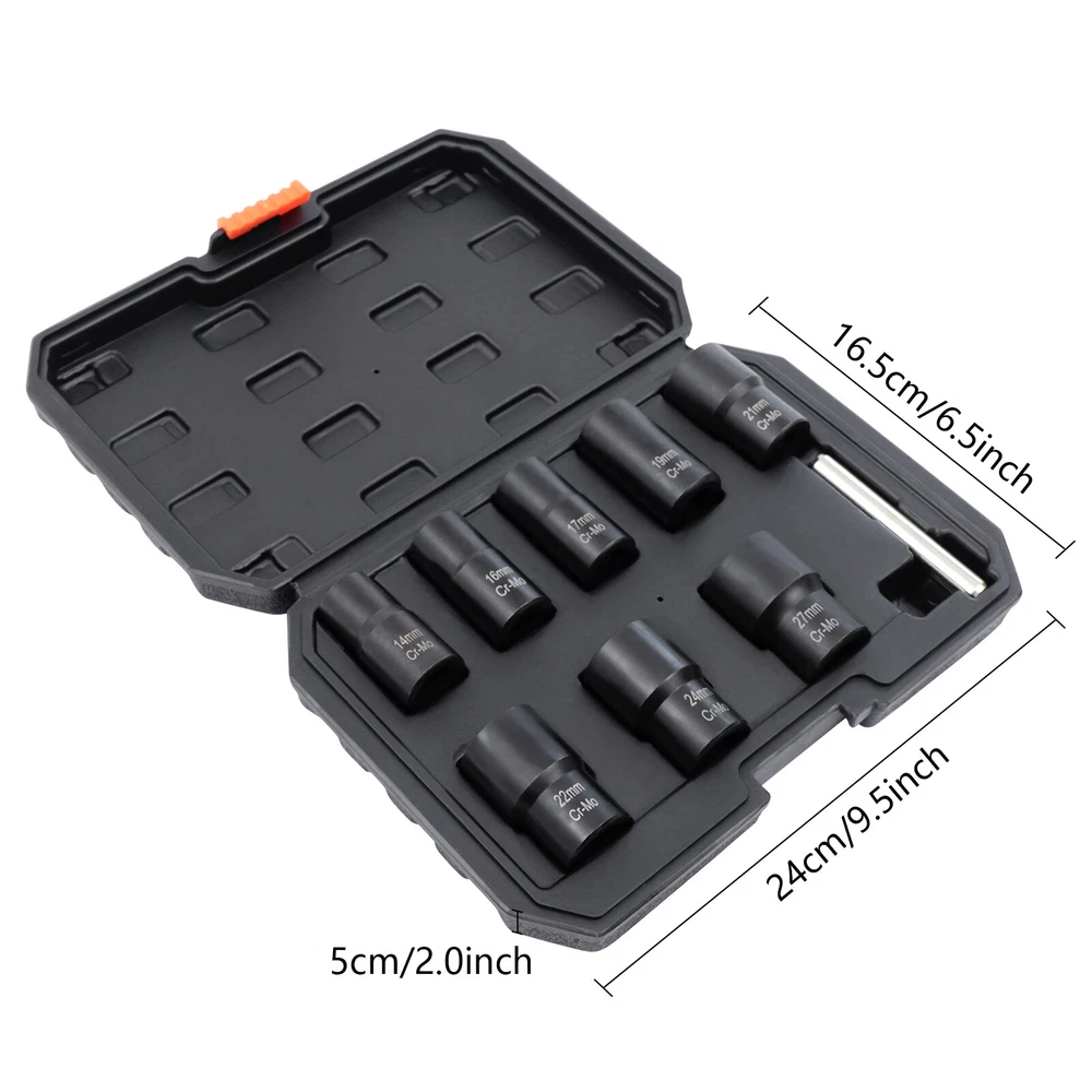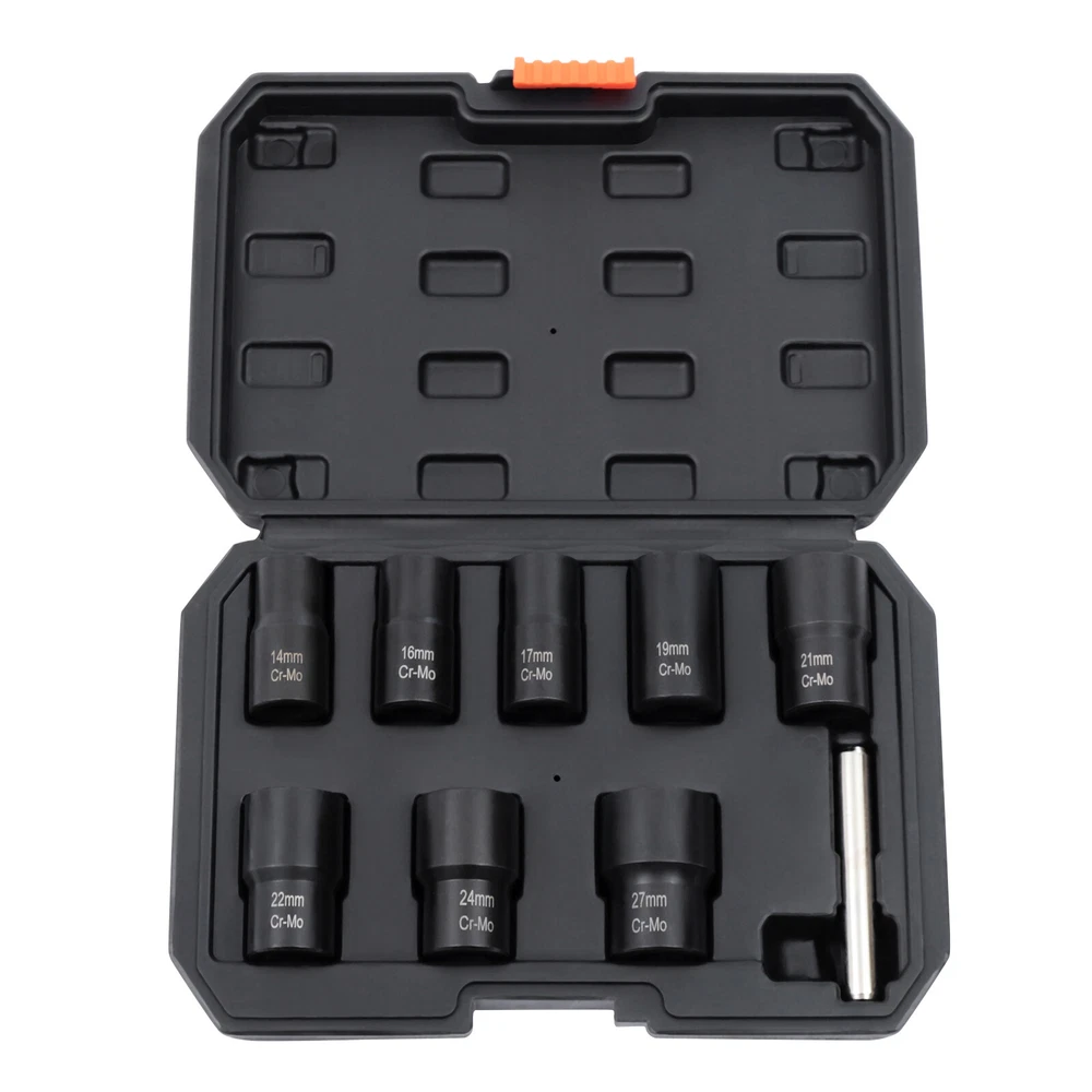 Description What if a bolt or nut is rusted or damaged and cannot be removed with a wrench? Then you'll need a bolt extractor that removes them easily. Our bolt extractor kit comes in 8 different sizes to fit different diameter nuts or bolts. The 42Cr-mo material and manganese phosphate surface treatment make these bolt extractors very strong and durable with long service life. This will be a good helper for you. Key Features Strong and Durable: The item is made of 42Cr-mo, which is relatively strong and stable. It is also not easy to damage or rust under proper use and is very durable. Ergonomic Design: This cylindrical rod is a very ergonomic design. It is smoother and more comfortable to hold while you are working. You will not feel fatigued even after long hours of use, givin 8 Pcs Wheel Lug Nut Remover Remove Damaged Locked Nuts Bolts Extractor Tools NEW Description What if a bolt or nut is rusted or damaged and cannot be removed with a wrench? Then you'll need a bolt extractor that removes them easily. Our bolt extractor kit comes in 8 different sizes to fit different diameter nuts or bolts. The 42Cr-mo material and manganese phosphate surface treatment make these bolt extractors very strong and durable with long service life. This will be a good helper for you. Key Features Strong and Durable: The item is made of 42Cr-mo, which is relatively strong and stable. It is also not easy to damage or rust under proper use and is very durable. Ergonomic Design: This cylindrical rod is a very ergonomic design. It is smoother and more comfortable to hold while you are working. You will not feel fatigued even after long hours of use, giving you great comfort. Optional Sizes: This item is equipped with 8 different diameter bolt extractors. You can choose bolt extractors with different diameters according to the size requirements of the bolts to be removed. Manganese Phosphate Treated Surface: The surface of these bolt extractors is treated with manganese phosphate, which improves the abrasion and corrosion resistance of the item. This gives the item a longer service life. Reverse Spiral Design: These bolt extractors have a reverse spiral design inside, which allows for better tucking and clamping of damaged nuts. So they can be easily removed. Easy to Carry: This item has a toolbox that is easy and convenient for you to take to the workplace you like without much effort. It is a good helper for you to improve work efficiency. Great Helper at Work: This kit can help you to take out the damaged nuts or bolts easily. This is very time and effort-saving and is a good helper at work. Guaranteed Customer Service: We aim to provide quality products and services. If you have any problems, please feel free to contact us. We will reply and solve the problem for you as soon as possible. Details Toolbox: This item comes with a toolbox that will keep these bolt extractors well organized. So these bolt extractors can be easily stored and carried. Clear Markings : These bolt extractors have diameter numerical markings that are laser engraved with great clarity. This makes it easy for you to find a suitable diameter bolt extractor. Application This kit can be used in factories, garages, and other places to remove damaged nuts and bolts of various sizes. Specifications Color: Black Material: 42Cr-mo Surface Treatment: Manganese Phosphate Gross Weight: 1.6kg/3.53 lbs Net Weight: 1.2kg/2.65 lbs Toolbox Size: 24*16.5*5cm/9.5*6.5*2" Bolt Extractor Diameter: 14mm/0.55"; 16mm/0.63"; 17mm/0.67"; 19mm/0.75"; 21mm/0.83"; 22mm/0.87"; 24mmm/0.94"; 27mm/1.06" How to Use Choose a bolt extractor with a diameter comparable to the nut or bolt that needs to be removed. Attach a drill to the bolt extractor and attach the end with the reverse spiral to the bolt or nut. Repeat the 360° rotation and the nut or bolt can be removed. If the damaged nut or bolt is stuck inside the extractor, you can use a rod to knock it out. Package Included 8* Bolt Extractors 1* Rod 1* Toolbox Notes Please allow the slight color difference caused by the shooting light and 1-3cm error due to manual measurement, and make sure you do not mind before you order. Payment Delivery details Terms of sales About us Contact us Payment We accept ebay payment 。 Fees such as import duties, taxes are not included in the item price or shipping costs. These charges are the buyer's responsibility. Delivery details Shipping: 2-9 working days to: USA Terms of sales We maintain high standards of excellence and strive for hundred percent customer satisfaction. Feedback is very important to us. We hope that you contact us immediately before you give neutral or negative feedback, so that we can address your concerns. It is impossible to address issues if we do not know about them! About us Your satis faction is our ultimate goal. We work hard to earn your trust and future business. Our certified technicians have tested each item before shipping. The unit comes with 1 year limited warranty on all manufacturing defects. a) If you receive a defective item, you may return it or ask for a discount. Please contact us within 14 days after you receive the package. b) What you returned must be intact and in its original packaging as re? u. Customer is responsible for shipping costs of the returned item. c) We will cover the cost of shipping back t with the shipping rate indicated in the registration page. We will send you a new unit or refund the full payment you paid. Thank you. Contact us Business Hour Business Hour: Monday To Friday: 8:30 AM to 5:00 PM (Beijing China time) Due to time zones, our reply to your questions may not be immediately. But within above working time, we will reply your email within 24 hours. If it's non-workdays, please kindly be patient and wait till Monday. Please contact us with ebay message. Please feel free to contact us if you have any questions. Monday To Friday: 8:30 AM to 5:00 PM (Beijing China time) Due to time zones, our reply to your questio