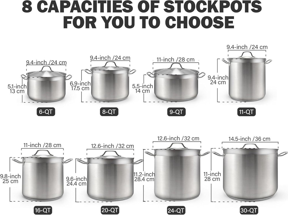 $ 62.398qt Stainless Steel Stock Pot W/ Lid Dishwasher Oven Safe Induction Cookware New