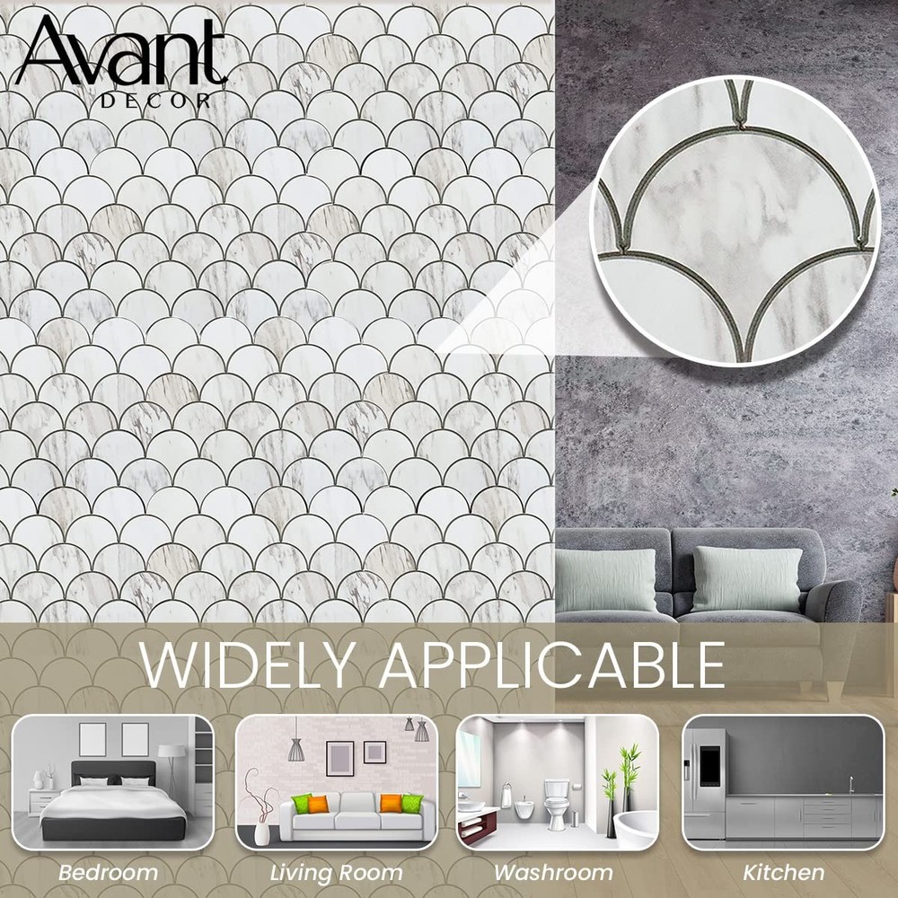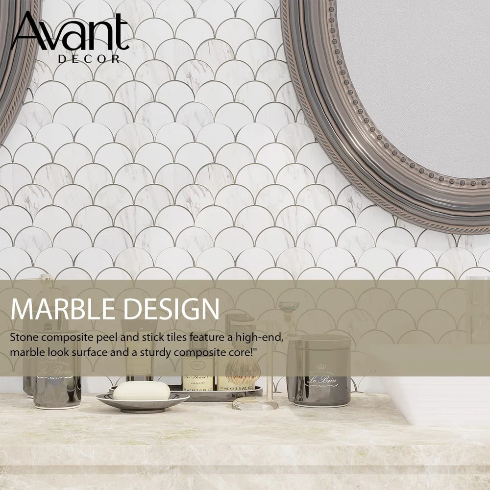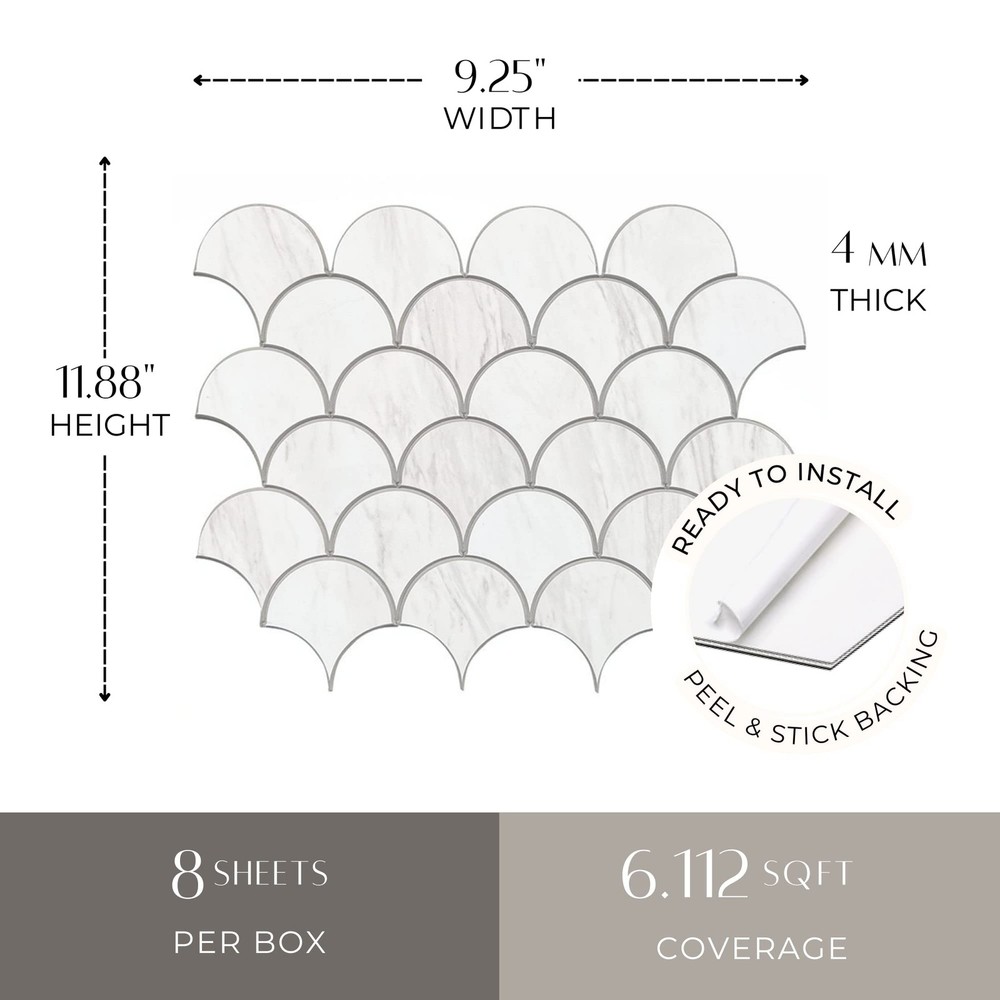 PEEL AND STICK BACKSPLASH ’s premium-grade kitchen backsplash tiles are a notch up from other adhesive wall tiles available on the market. Enjoy beautiful designs, 3X adhesive strength, 4mm thickness, heat and moisture resistance and a 3D realistic tile effect. PEEL AND STICK BACKSPLASH ’s premium-grade kitchen backsplash tiles are a notch up from other adhesive wall tiles available on the market. Enjoy beautiful designs, 3X adhesive strength, 4mm thickness, heat and moisture resistance and a realistic tile effect. EASY TO INSTALL Our stick on tiles make for an effortless DIY install that requires minimal preparation and expertise. With a few simple tools, your kitchen, bathrooms, or living space can be transformed into a designer room! No grout, no mess, no hassle. STONE COLLECTION Sharp and sleek, stone composite peel and stick tiles feature a high-end, marble/wood look surface and a sturdy, composite core. Your budget-friendly home improvement solution! Tiles measure 9.25” x 11.88”, 4 mm thick, and cover 0.76 square foot each. Box contains 8 tiles, total coverage of 6.11 square feet. QUALITY GUARANTEED ’s peel and stick tiles are simple to cut, easy to clean, and heat and humidity resistant. (Not intended for use in showers.) Upgrade your kitchen backsplash instantly with fast DIY installation and enjoy long-lasting durability. Born to take the hassle out of DIY renovations, tiles are easy to cut and install and are made to look like real, beautiful tiles. With a wide variety of shapes, textures, and colors, caters to all tastes and styles.