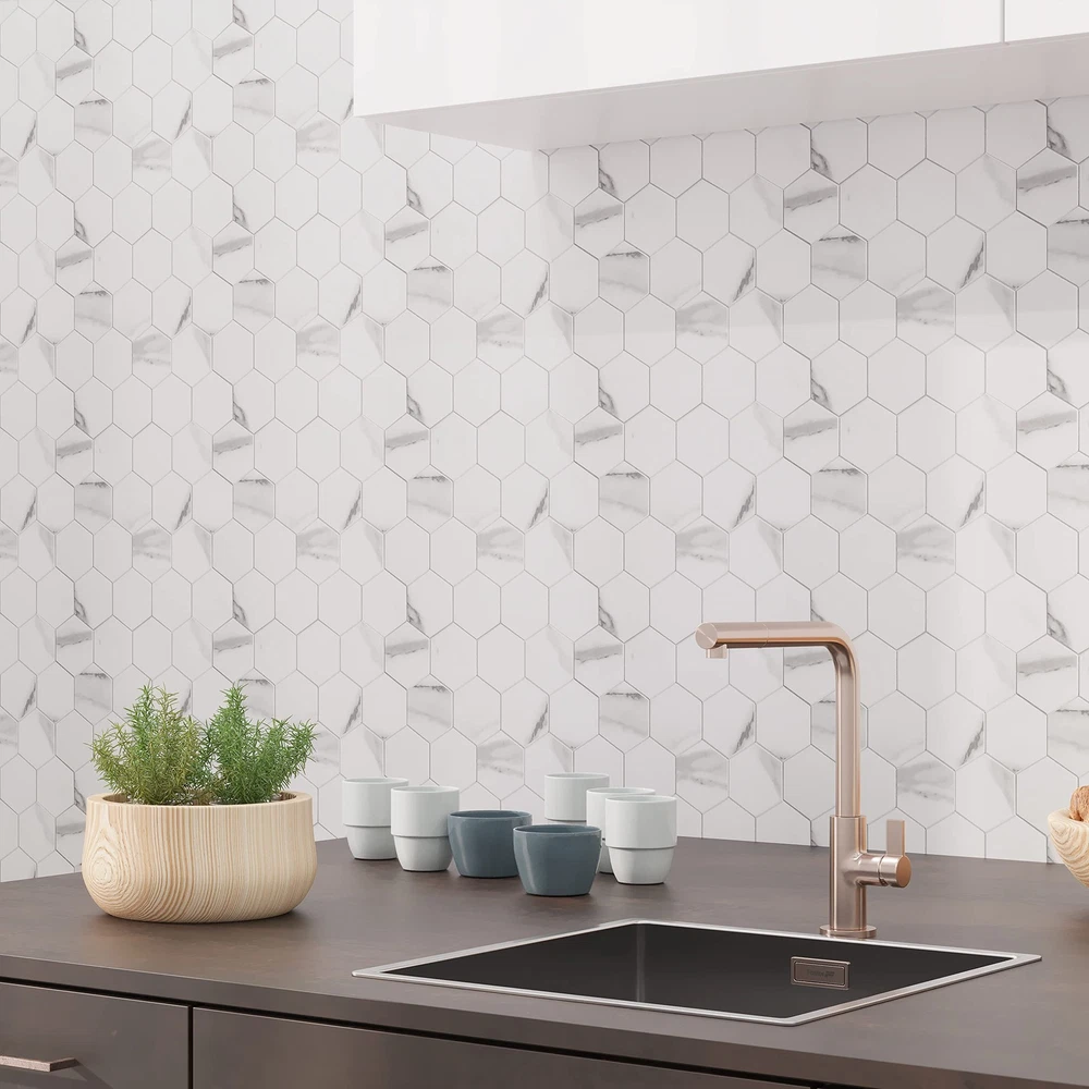 PEEL AND STICK BACKSPLASH ’s premium-grade kitchen backsplash tiles are a notch up from other adhesive wall tiles available on the market. Enjoy beautiful designs, 3X adhesive strength, 4mm thickness, heat and moisture resistance and a 3D realistic tile effect. PEEL AND STICK BACKSPLASH ’s premium-grade kitchen backsplash tiles are a notch up from other adhesive wall tiles available on the market. Enjoy beautiful designs, 3X adhesive strength, 4mm thickness, heat and moisture resistance and a realistic tile effect. EASY TO INSTALL Our stick on tiles make for an effortless DIY install that requires minimal preparation and expertise. With a few simple tools, your kitchen, bathrooms, or living space can be transformed into a designer room! No grout, no mess, no hassle. STONE COLLECTION Sharp and sleek, stone composite peel and stick tiles feature a high-end, marble/wood look surface and a sturdy, composite core. Your budget-friendly home improvement solution! Tiles measure 10.82” x 12.8”, 4 mm thick, and cover 0.96 square foot each. Box contains 8 tiles, total coverage of 6.38 square feet. QUALITY GUARANTEED ’s peel and stick tiles are simple to cut, easy to clean, and heat and humidity resistant. (Not intended for use in showers.) Upgrade your kitchen backsplash instantly with fast DIY installation and enjoy long-lasting durability. Born to take the hassle out of DIY renovations, tiles are easy to cut and install and are made to look like real, beautiful tiles. With a wide variety of shapes, textures, and colors, caters to all tastes and styles.