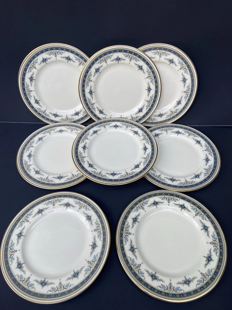 8 Vintage 1973 limited edition Minton GRASMERE BLUE Luncheon/Salad Plates Gold Trims Each measures approximately 8 inches wide in diameter. All are in excellent condition and appear unused. Few plates noted with few surface scratches,seen best at an angle under bright lights, likely occurred from shearing and stacking. Very minimal gold wear such as orange discoloration noted. No chips, no cracks nor repairs found. All of the pictures were taken in natural daylight to capture the closest actual shade of color; however and in person, the plates might be slightly brighter or darker than the photos due to camera’s autofocusing features. The set weighs approximately 5 pounds 12 ounces without packaging material. Will package with great care and thank you kindly for your consideration. REASONABLE SHIPPING: Calculated shipping: Weight and distance based shipping via USPS Ground Advantage domestically USA from South Florida. USPS Ground Advantage is lowest shipping cost. Estimated delivery of 2-8 business days. Shipping costs is based on item(s) weight including packaging materials and the distance from the seller’s zip code to the buyer’s zip code. Buyers whose shipping address/zip code is in the East coast of USA tend to have higher shipping costs as distant is longer from seller’s South Florida zip code. Ships globally via Ebay International Shipping Delivery.