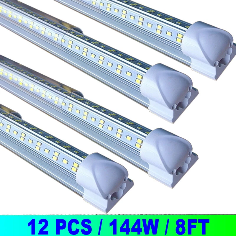 FAST DELIVERY - Ship from New Jersey or Los Angeles Warehouse via FedEx , 3-7 Days Delivered Your Door . SCIENTIFIC DESIGN - 8Ft LED Shop Lights Fixture is Made of 6500K Cold White SMD2835 LED Chip ,Plastic Clear Cover , Aluminum Bracket Housing ,and AC85-277V Constant Current Driver . It can work in -68F to 120F Temperature Conditions EASY INSTALLATION - The Integrated Tube Fixture Can be Install on Wall or Ceiling ,Easily Replace Traditional Fluorescent Tube Bulb . Plug and Play , Free Accessories (Power Cords, Connector , Extension Cords , Clip and Screw ) Come with Tube Lights Together WIDE APPLICATION - Linkable 8Ft Bulbs Widely Used in Garage Ceiling , Barbershop , Schools, Hospitals Basement , Factory Warehouses , Supermarkets Cooler Door , Offices, Shops,Hotels, etc 8 foot led shop lights 144w led Strip Lights 12Pc Cold White LED Garage Lights FAST DELIVERY - Ship from New Jersey or Los Angeles Warehouse via FedEx , 3-7 Days Delivered Your Door . SCIENTIFIC DESIGN - 8Ft LED Shop Lights Fixture is Made of 6500K Cold White SMD2835 LED Chip ,Plastic Clear Cover , Aluminum Bracket Housing ,and AC85-277V Constant Current Driver . It can work in -68F to 120F Temperature Conditions EASY INSTALLATION - The Integrated Tube Fixture Can be Install on Wall or Ceiling ,Easily Replace Traditional Fluorescent Tube Bulb . Plug and Play , Free Accessories (Power Cords, Connector , Extension Cords , Clip and Screw ) Come with Tube Lights Together WIDE APPLICATION - Linkable 8Ft Bulbs Widely Used in Garage Ceiling , Barbershop , Schools, Hospitals Basement , Factory Warehouses , Supermarkets Cooler Door , Offices, Shops,Hotels, etc