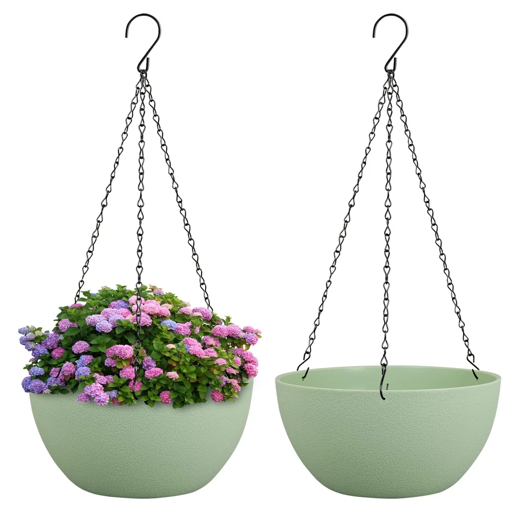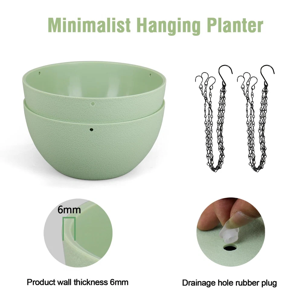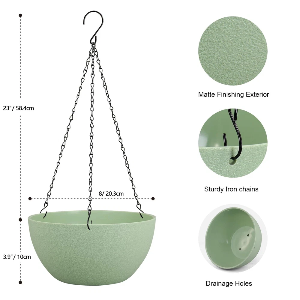 8 inch Small Hanging Planters Plant Pots for Indoor Outdoor Plants, 2 Pack Hanging Flower Pots with Drainage Holes and Chain for Garden Porch, Plastic Hanging Baskets for House Plants, Green 【Drainage Holes and Removable Plugs】Hanging flower pots come with 2 drainage holes and 2 rubber removable plugs to ease the concern of overwatering for your indoor outdoor plants. Your yellow pansies, pothos and sun rose plants will thrive in these porous, breathable hanging planter. 【Lightweight and Sturdy】Hanging planters are made from brand new plastic, these plastic planters are light enough to hang anywhere indoor and outdoor. But our hanging baskets are very sturdy, the hanging plant pots are about 6mm thickness. 【Variety】hanging planters are available three sizes and eight colors for your choose. These hanging pots are great for indoor outdoor plants, as well as on your home, garden, porch or décor. 【Minimalist Modern Design】Trendy colors and a modern look allow this decorative pot to fit into any indoor and outdoor setting. This hanging flower pots design the matte finishing exterior and gives it a unique textured look. 【Package Content】Hanging planter with iron chain x 2, rubber plugs x 4, plastic pots x 2. these planters are easy to install and suitable for hanging in various locations such as balcony, window and garden. BTW, If you have any questions,please feel free to contact us and leave the message to us.