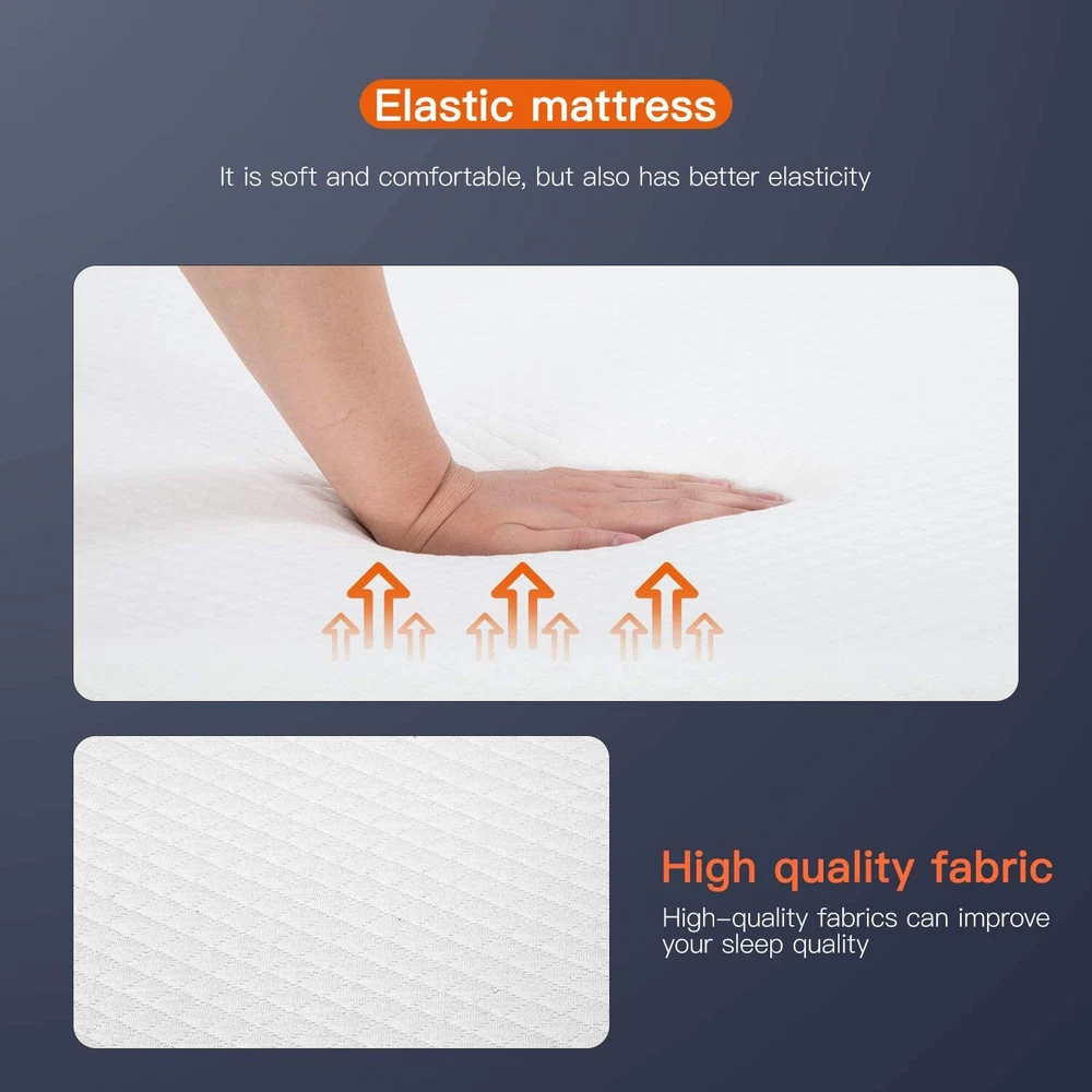 ※〖Comfortable And Breathable〗This gel memory foam mattress is slightly thicker and firmer than a traditional mattress. Gel memory foam mattress supports all parts of the body evenly and individually. ※〖Gel Process〗The gel on your mattress absorbs excess heat while you sleep, allowing you to fall asleep more quickly.Compared to conventional mattresses, the gel coating increases the mattress's use time and makes it less prone to damage. ※〖Excellent Quality〗The mattress is a total of 8 inches thick and the memory sponge is 2 inches thick.It can return to the original shape when you leave the mattress, as long as regular cleaning, the mattress will be as clean as new. ※〖Strict Packing〗The mattress is compressed into a sturdy plastic bag and protected by a cardboard box.When you need to use it, just open the plastic bag and unwrap the mattress.The mattress will return to its original shape within 6 hours.Note that it takes about 72 hours for the mattress to get rid of its odor. ※〖Easy To Clean〗It includes a cover that is washable for your convenience. Pressure relieving gel foam naturally draws heat away from the body for a more comfortable night's sleep;Beautifully detailed all around cover with four-way stretch works with the memory foam to optimize its conforming properties.Gel-infused memory foam keeps you cool during sleep and body-contouring memory foam reduces pressure points and properly aligns the spine.
