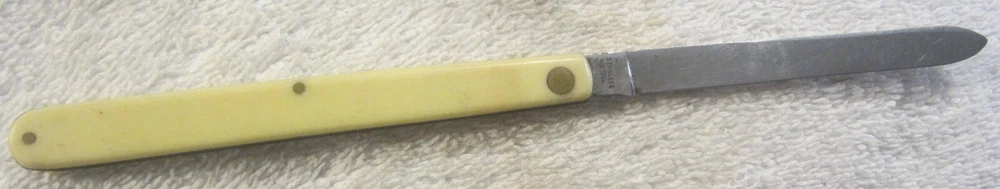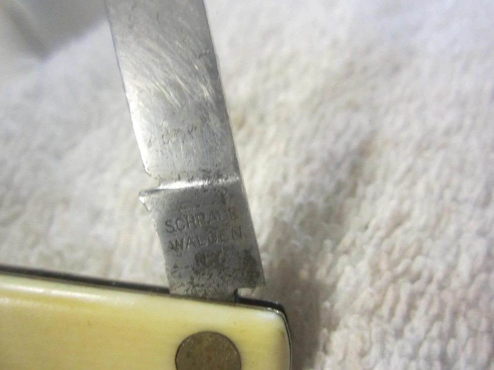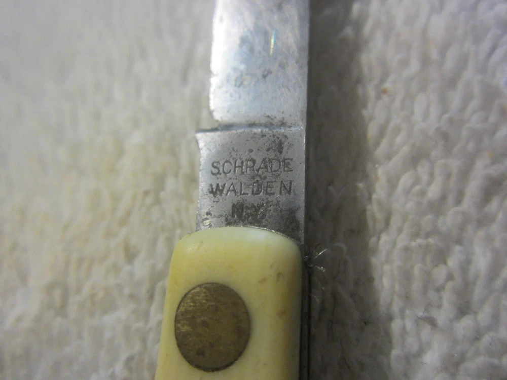Seller Notes:“Has some lite discoloring and use wear. Should be cleaned and sharpened. See pics for condition.”Blade Edge:PlainOriginal/Reproduction:OriginalLock Type:SlipjointNumber of Blades:1Type:PocketknifeOpening Mechanism:ManualDexterity:AmbidextrousProduct Line:naColor:CreamBrand:SchradeHandle Material:PlasticCountry/Region of Manufacture:United StatesModel:naBlade Type:shownBlade Material:Stainless Steel