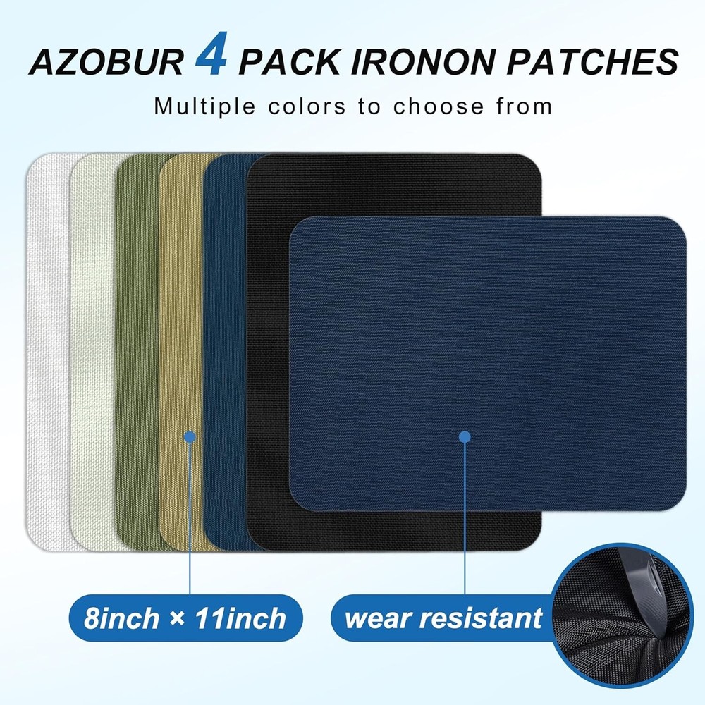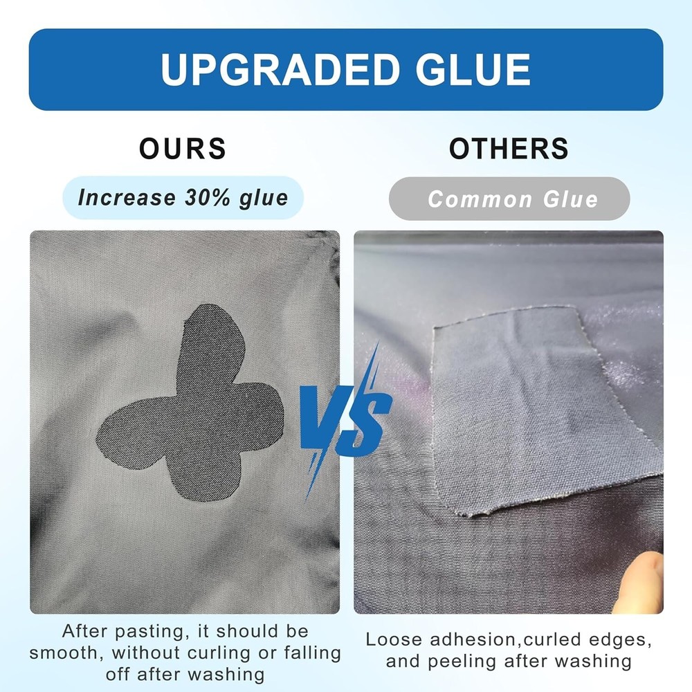 Canvas Fabric Iron-on Patches 8" x 11", Waterproof Tenacious Adhesive Tape Iron-on Patch for Tent, Clothing, Backpack, Luggage,Boat Cover,AwningBlack Package Includes: 4 pcs canvas iron on patches, size 8" x 11".Not only can you cut out a variety of sizes, but you can also make any favorite pattern you like to meet your needs. Excellent Waterproof and Durability:Our canvas patches have 30% more glue than other patches, and after many wash and dry tests, the patches are still strong. The technology of yarn separation is adopted to make the yarn more firm and tight, not easy to come loose, more durable than other similar products. Multiple Functions: The back of the canvas fabric repair patch is made of a thick strong hot melt adhesive film that helps you quickly and easily repair scratches, cracks or holes,provides a reliable and long-lasting for repairing clothes, down jackets, umbrellas, tents, outdoor sleeping bags, outerwear, backpacks, gloves and other items. Easy to use:Open the package and stick the fabric patches in the right place,Iron on patch for a few minutes,it's 1. Ironing or heating time may vary depending on the power of the iron or hairdryer. 2. After applying, let it sit undisturbed for 24 hours for better adhesion.) Excellent Service: If you are not satisfied with the product, or have any questions, please contact me, we are more than happy to help you.
