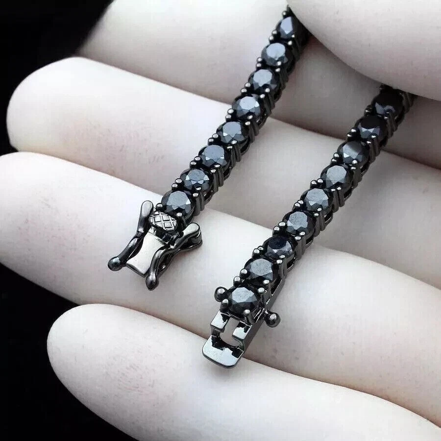 8.0 Ct Round Lab Created Black Onyx 6MM Tennis 7" Bracelet 14K Black Gold Plated