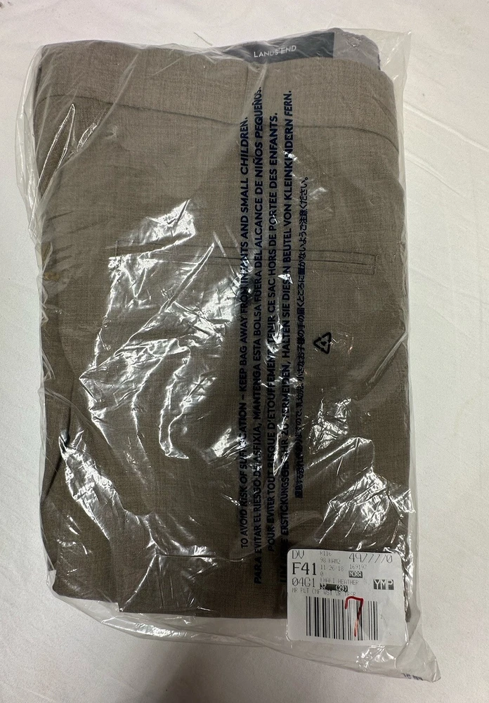 Elevate your wardrobe with these classic dress pants from Lands' End. Made from high-quality cotton flannel fabric, these beige pants feature a flat front and a straight leg style with a high-rise waistline for a comfortable fit. The adjustable waistband and pockets make them perfect for any occasion, whether it's for work, travel, or a casual outing. These pants are lined and have a button closure, making them suitable for winter, fall, and spring seasons. The solid pattern and vintage style add a touch of sophistication to your outfit. Get these Lands' End men's traditional fit classic pants in size 37x29 for $80 today!