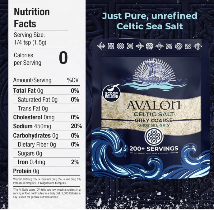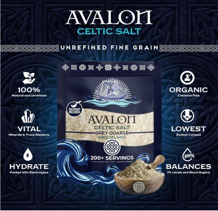 Avalon Celtic Salt, 8.0 OZ Coarse Celtic Sea Salt Organic, Unrefined French Celtic Salt Organic 82 Minerals Coarse, 100% Natural Gros Sel Gris, Sal Celtica Organica, Celtics Salt. Flavor CELTIC SALT Brand AVALON CELTIC SALT Specialty MINERAL FRENCH SEA SALT Unit Count 8.0 Ounce Number of Items 1 100% ORGANIC CELTIC SEA SALT: Avalon Celtic Salt is hand-harvested from the France coastline, offering a natural and Organic Celtic Salt rich in 82+ essential minerals, providing both flavor and health benefits. ELECTROLYTE BALANCE SUPPORT: Avalon Celtic Salt is rich in essential minerals like magnesium, calcium, and potassium, making it an excellent choice for supporting electrolyte balance. It's ideal for those following paleo, keto, or low-carb diets. VERSATILE AND FLAVORFUL: Ideal for seasoning meats, seafood, vegetables, and more, our Avalon Coarse Celtic Salt enhances flavors while providing the natural goodness of unrefined mineral salt. COARSE GROUND PERFECTION: Our sea organic salt features larger crystals that are perfect for grinders, providing a satisfying crunch and a bold, savory flavor when used as a finishing salt. It adds texture and depth to any dish. SUPERIOR PACKAGING FOR FRESHNESS: Our premium resealable bag locks in freshness, ensuring our celtics salt remains pure and flavorful from first to last use, reflecting our commitment to providing the finest quality products. . We offer FREE shipping on all orders! . We ship within Five business days of payment, usually sooner. . We use a selection of shipping services such as UPS, FedEx, USPS etc. . We only ship to the lower 48 states, no APO/FPO addresses or PO Boxes allowed. . Local pickups and combined shipping options are not provided at this time. . Your satisfaction is a wonderful reward for our efforts. Please assist us by leaving a positive review if you feel pleased with our service. . In the event that you encounter any difficulties related to your order, please do not hesitate to reach out to us directly through the Messaging system on the Ebay platform. Kindly consider opening a COMPLAINT or a RETURN REQUEST as a last resort, only after all other possible measures have been attempted and we have been unable to provide you with assistance. . We will get in touch with you within 24 hours and make every effort to ensure your satisfaction. . Please rest assured of our service quality.