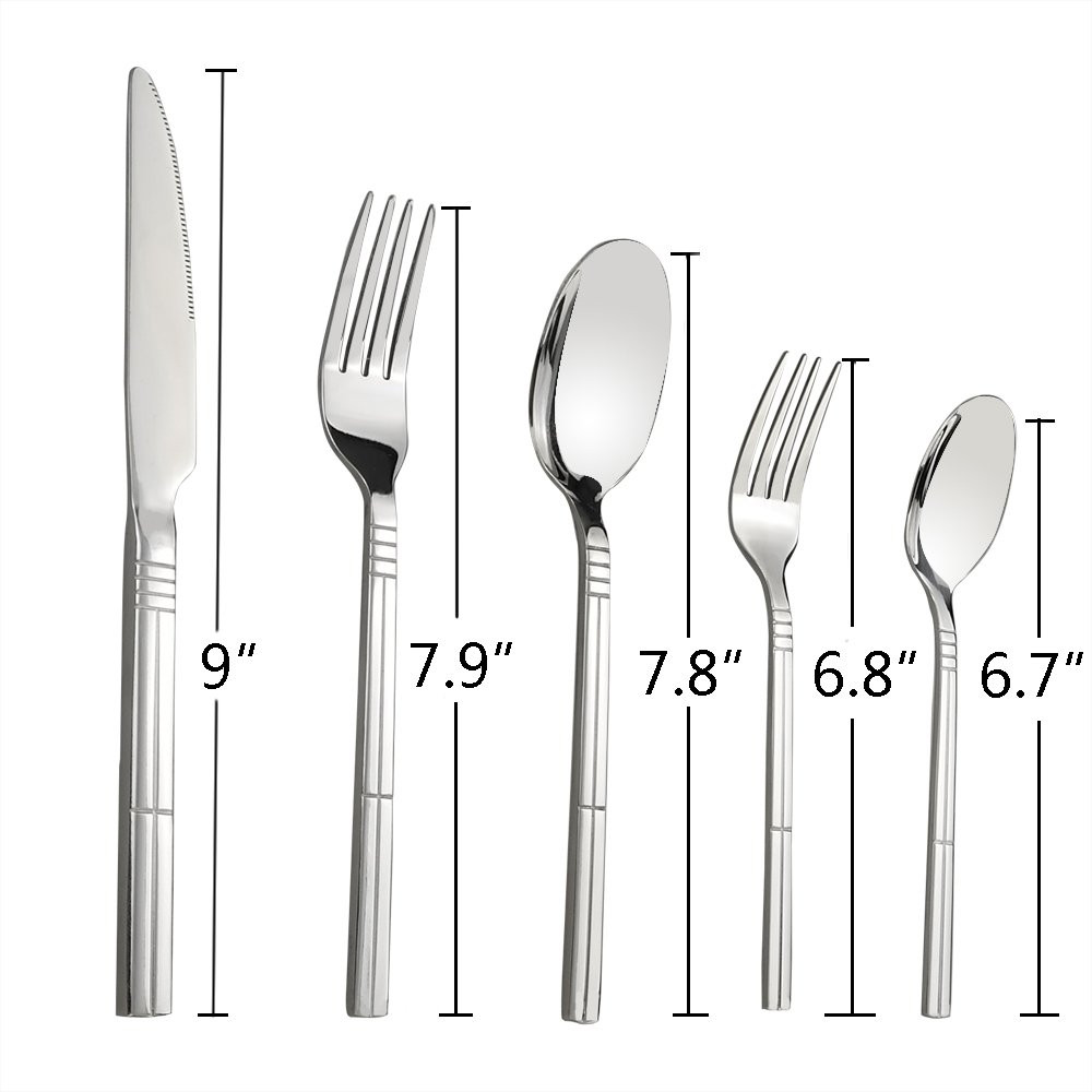 Made of premium stainless steel Tableware adopts mirror polishing design, with smooth surface and easy cleaning Suitable for everyday use or special occasions Flatware set serving for 16, including 16 knives, 16 dinner forks, 16 dinner spoons, 16 dessert forks and 16 dessert spoons Appropriate weight and thickness