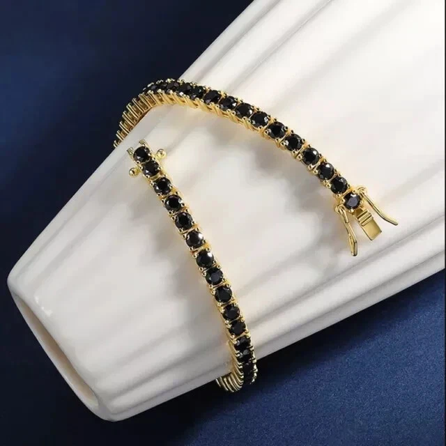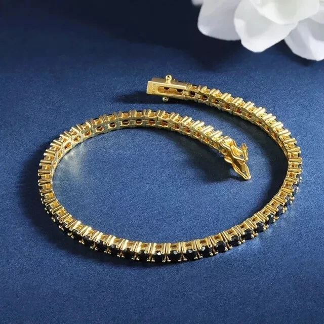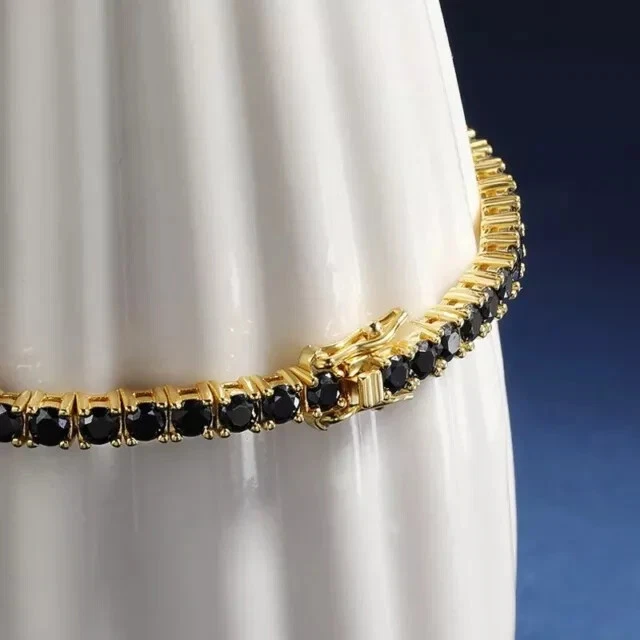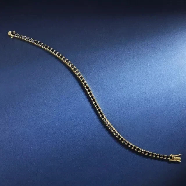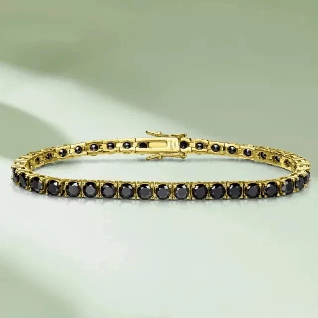 8.00 Ct Black Lab Created Diamond Tennis Bracelet 14k Yellow Gold Plated