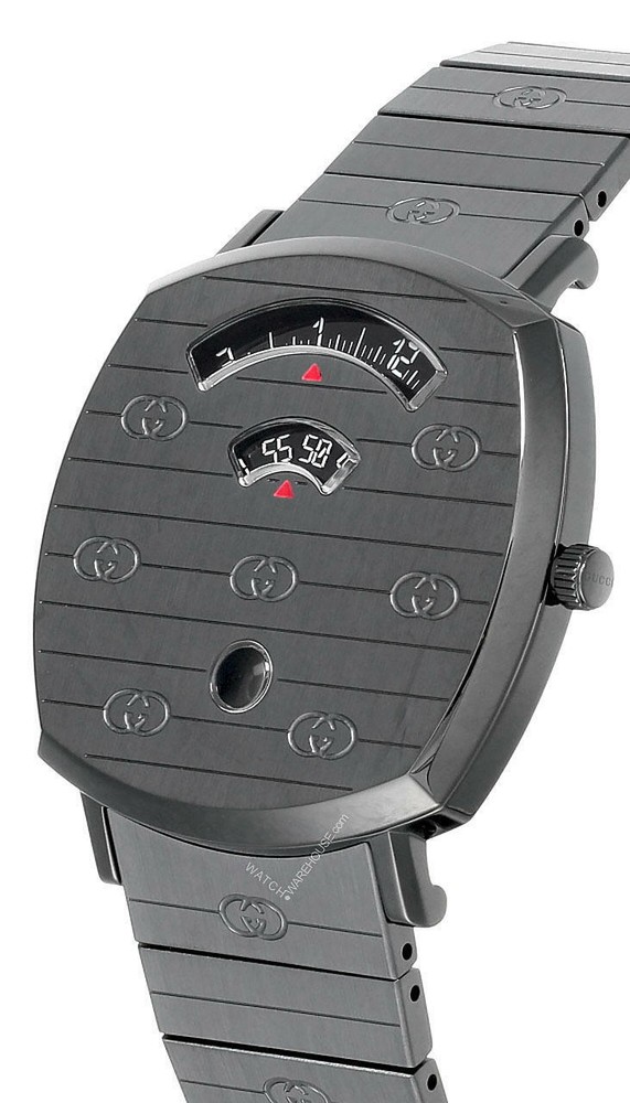 Handedness: Right Closure: Buckle Model: Gucci Grip Case Material: Crystal, Stainless Steel Display: Analog Band/Strap: Bracelet Theme: Celebrity GTIN: 0731903479746 Features: Swiss Movement, Push/Pull Crown, Date Indicator, Scratch-Resistant, Water-Resistant, Swiss Made, Day/Date, Sapphire Crystal, Chronograph, Limited Edition, Self-Winding, 12-Hour Dial, Water Resistance Band Color: Gray, Black, Silver Lug Width: 20 mm Movement: Quartz Indices: Round Indexes, Baton Indexes, Arrow Markers, Diamond Markers, Arabic Numerals Bezel Color: Silver, Black, Gray Reference Number: YA157429 Brand: Gucci Case Thickness: 6 mm Case Color: Black, Gold, Gray, Silver Case Size: 38 mm gtin13: 0731903479746 Bezel Type: 12-Hour, Fixed, 24-Hour Band Material: Metal, Leather, Stainless Steel Water Resistance: 30 m (3 ATM) UPC: 0731903479746 Caseback: Screwback Band Width: 20 mm Watch Shape: Round Style: Dress/Formal, Luxury, Sport, Casual, Classic Type: Wristwatch Case Finish: Engraved Dial Pattern: Logo Dial Color: Black, Gray