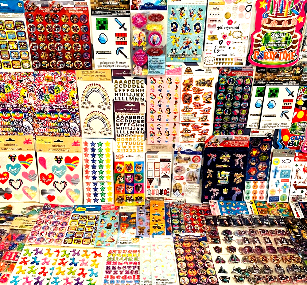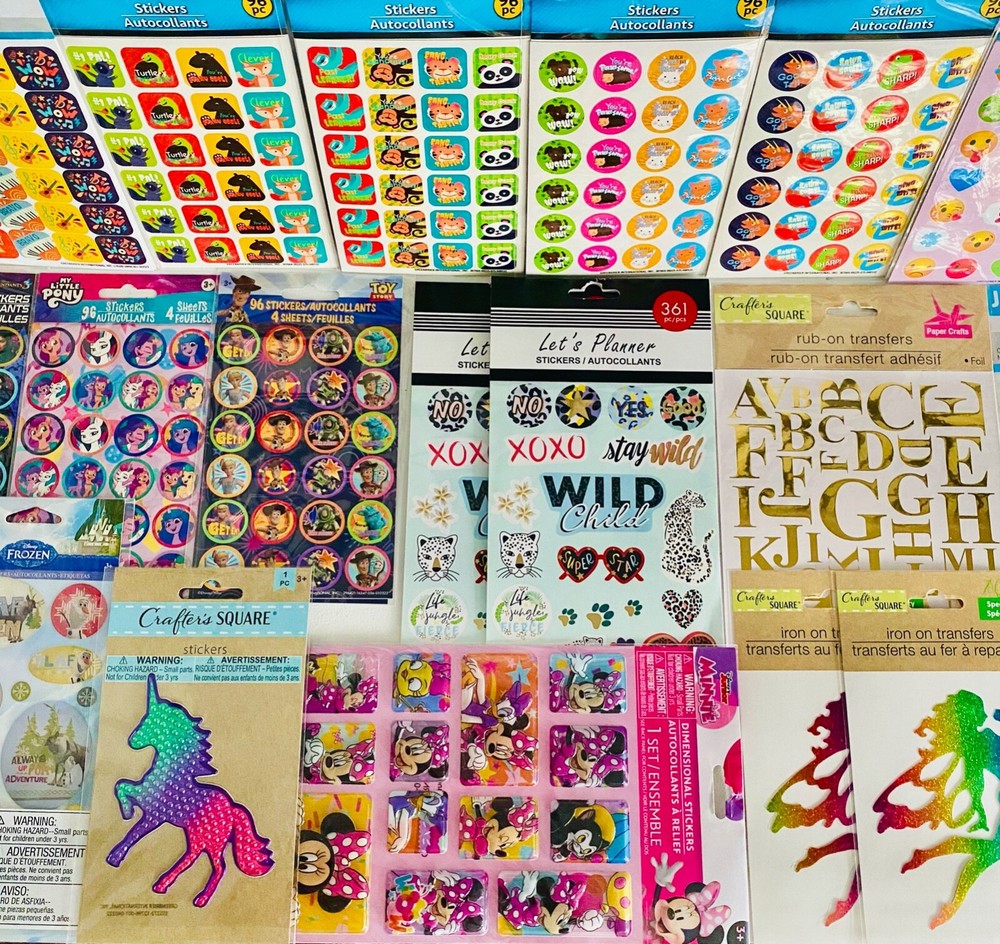 Popular Trending Mixed Sticker Lot | The Ultimate Kit | Qty. 800+ Stickers High Quality Only! Fun Assortment of Puffy, Scrapbook, Cartoons, Bubble, Pop Up Stickers Packs For Everyone! I have included a large variety of pictures of the assortment available. The pictures give you an idea of what you will be receiving. Please Note: You will not receive everything pictured. Please contact me with any special requests. This HUGE Variety of fun designs stickers can be used in parties, classroom, school and home, good for reward for students, potty training, adding inside a birthday card, game activities, entertaining toddlers, etc. Perfect Gifts for Kids & all Occasions: Can be given as a gift for kids, girls, boys, toddlers, teens, students, friends, and classmates, they will love it! Each package of stickers is a different style & theme with some lovely embellishments like rhinestones, ribbons, buttons and other 3D details that make these quality stickers look so unique!