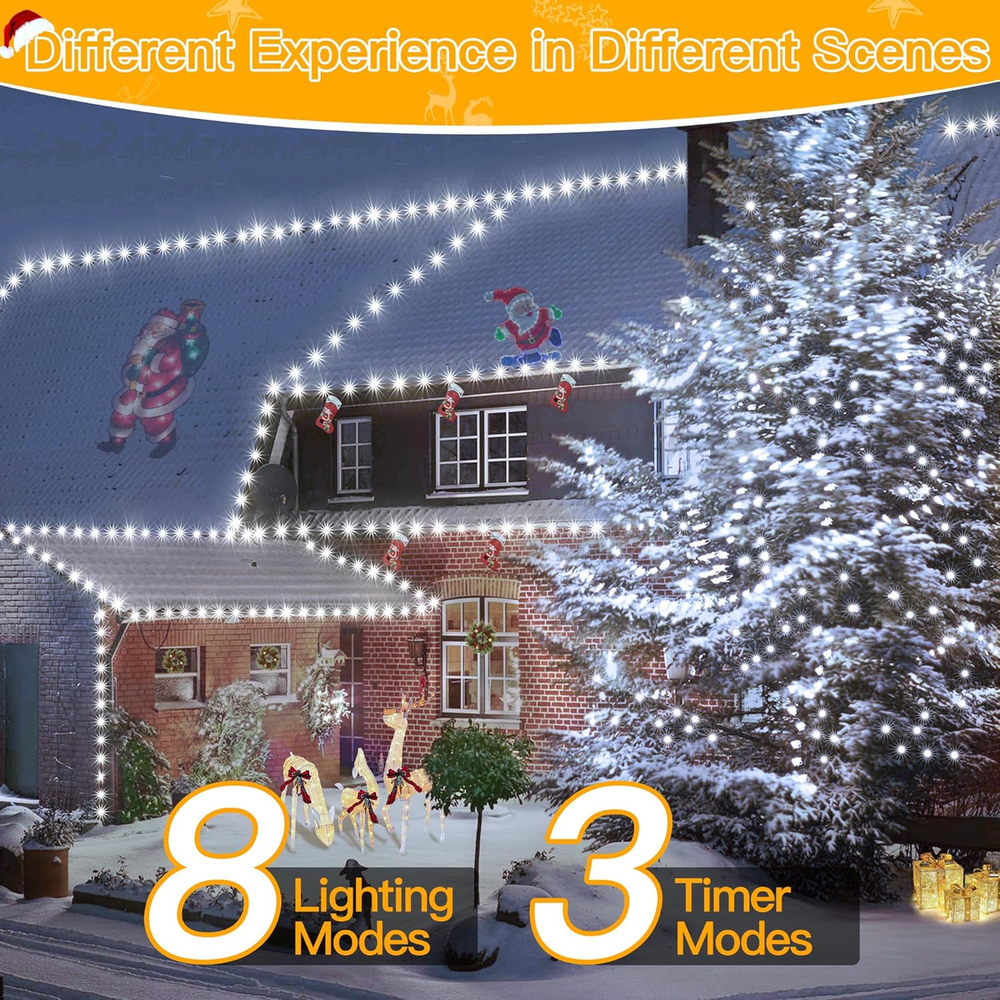 Store New Arrivals Add to Favorite View Feedback Contact Christmas Lights 800 LED 262 FT Plug In, IP67 Waterproof Green Wire Outdoor Christmas Lights with Remote, 8 Modes and Timer Christmas Tree Lights for House Indoor Xmas Decorations (Cool White) Description Item model number HG-29V807C Light Source Type LED Style Traditional Number of Items 1 Power Source Corded Electric Number of Light Sources 800 Control Method Remote Theme Christmas Batteries Included? Yes Controller Type remote control-8 Batteries Required? Yes Bulb Shape Size C9 Material Polyvinyl Chloride Seasons Christmas Number of Batteries 1 CR2032 batteries required. (included) Form Factor Rigid string Package Dimensions 7.13 x 5.98 x 2.24 inches Bulb Features Dimmable Indoor/Outdoor Usage Outdoor, Indoor Bulb Base GU10 Light Color Cool White Water Resistance Level Waterproof Item Weight 1.43 pounds Connectivity Technology Infrared Occasion Christmas, Halloween Special Features Timer, Waterproof, Remote Controlled, Adjustable, Dimmable, Energy Efficient Special Feature Timer, Waterproof, Remote Controlled, Adjustable, Dimmable, Energy Efficient Part Number HG-29V807C Color Temperature 2400 Kelvin Color Cool White Wattage 6 watts Batteries 1 CR2032 batteries required. (included) Voltage 29 Volts Included Components LED Light Strip Luminous Flux 1.5 Lumen Size 800LED Tangle-Free Design: Ollny Christmas lights feature embedded bulbs for a sleek cord, eliminating tangles common with traditional lights; perfect for easy storage and setup.(262ft long and extra 9.8ft extension cord) IP67 High Waterproof Grade: Ollny led Christmas lights are 100% protected against solid objects like dust and sand. Being IP67 waterproof enabled, these led Christmas lights are suitable for both indoor and outdoor usage even in rainy, snowy or storm days Versatile Remote Control: Enjoy 8 lighting modes,4 brightness levels and 3 timer settings, tailored to fit any occasion or mood; easily adjust to suit your needs. The memory function retains your last settings for next use Safe & Low-Voltage: With 29V output, these lights stay cool during use, ensuring safe touch and hassle-free operation, making them perfect for families with kids and pets Package Include: 1x 800 LED Christmas Lights; 1x Remote Controller with battery; 1x Controller box; 1x Plug; 1x Manual. If you have any question about the item or for any reason you are not satisfied, please feel free to Product Description Why Choose Ollny 1 IP67 Waterproof 2 4 Brightness Levels 3 3 Timer Choices 4 8 Lighting Modes What You Get Wish You A Very Merry Christmas! ABOUT US We offer the best prices around on high quality products. Our E-store includes media such as books, movies, music and games while offering electronics, toys, sporting apparel, clothing, tools, general home, garden items and more. SHIPPING We are always working hard to ensure your package arrives as soon as possible. Please understand that some factors like weather, high postal traffic, and the performance of shipping companies are outside of our control. We offer free shipping to the lower 48 states and ship within 2 business days of payment, usually sooner. We do not accept P.O. Boxes. Please provide a physical address. For shipping outside of the continental USA, we only use eBay's Global Shipping Program.The item is shipped to KY and then sent to the rest of the world. International customers are responsible for all duties and taxes. Continue to check out in order to calculate costs for shipping the item to your country. Messages regarding eBay's Global Shipping Program MUST be directed at eBay EXCLUSIVELY. RETURNS We offer a 30-Day Return Policy on items which you are not completely satisfied with. You have the option for a full-refund or an exchange of the item. No returns are available on items shipped outside of the USA. PAYMENT We accept PayPal. CONTACT US This page content is yet to come Please ad us to your favorite seller and visit again later Thank You CUSTOMER SATISFACTION We try our very best to make sure every customer is completely satisfied. If there's a problem, message us! We're happy to help. WE ACCEPT Copyright © 2021 AutoDS. | All Rights Reserved