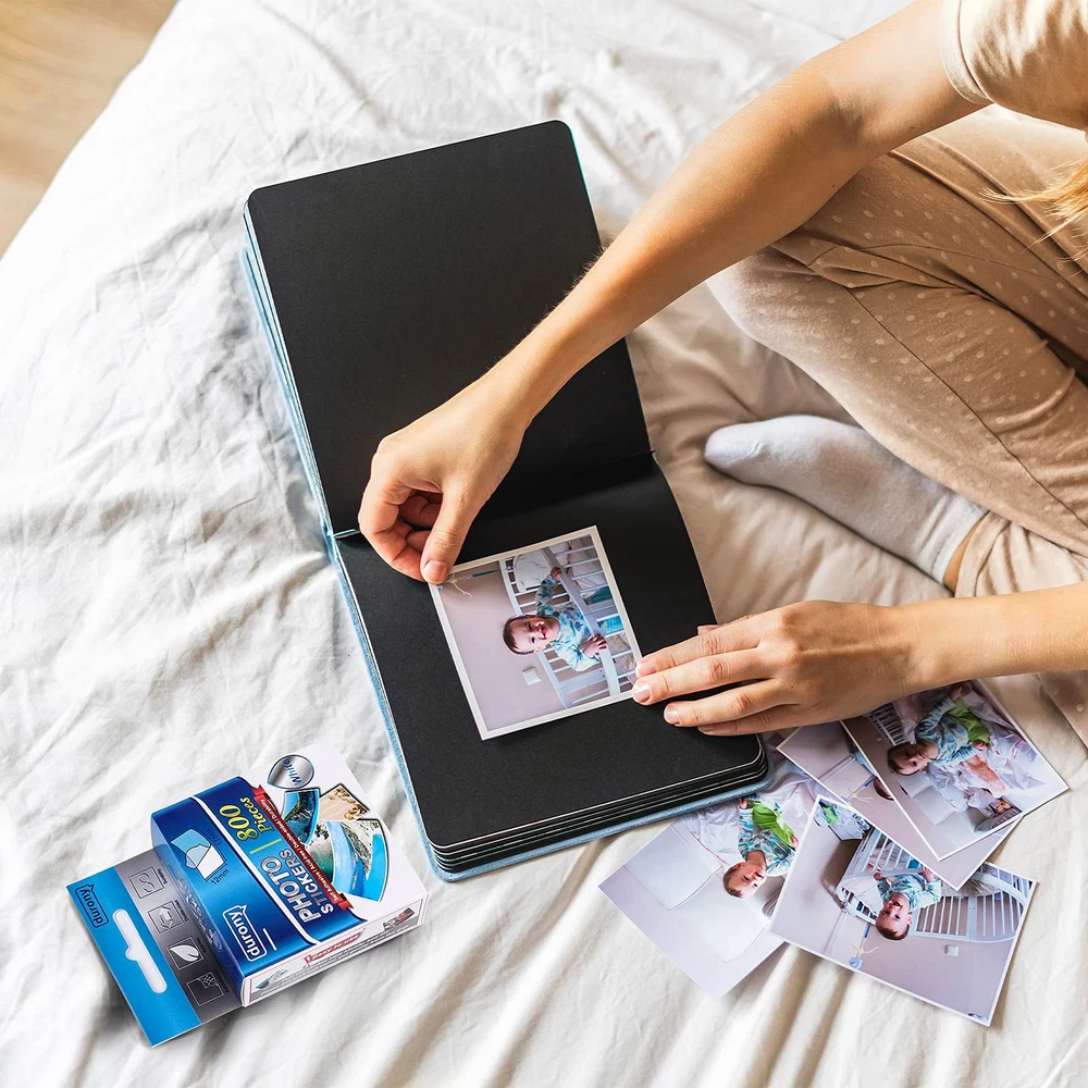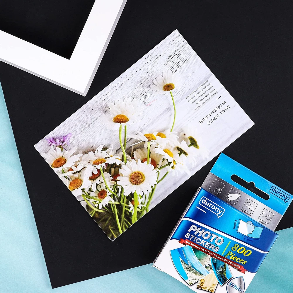 Quantity: there are 800 pieces of photo stickers in 1 package, adequate quantity can meet your various use needs, you can use these stickers yourself, or share them with your friends or family Easy to use: the way to use these photo tapes is very simple, you just need to slowly pull out the photo tape at the bottom of the box, then, it will come out from the gap, with this, you can stick photos wherever you want Protect photo corner: our photo stickers will not stick directly to the surface of the photo, oppositely, they are stuck on the back of the photo, so, when you remove these stickers, they will cause no damage to your photos, thus, they can make the photos more beautiful Features: our photo stickers are double-sided adhesive, they are quite strong in adhesion, thus, when you use them to paste photos, the corners of photo will not pop up, you can feel free to use them Wide application: our photo stickers have a wide range of applications, you can paste photos, artwork, or images into DIY scrapbooks, picture frames, handmade albums, memory books, photo walls, cards, invitations, or other places, in order to get some unforgettable memories