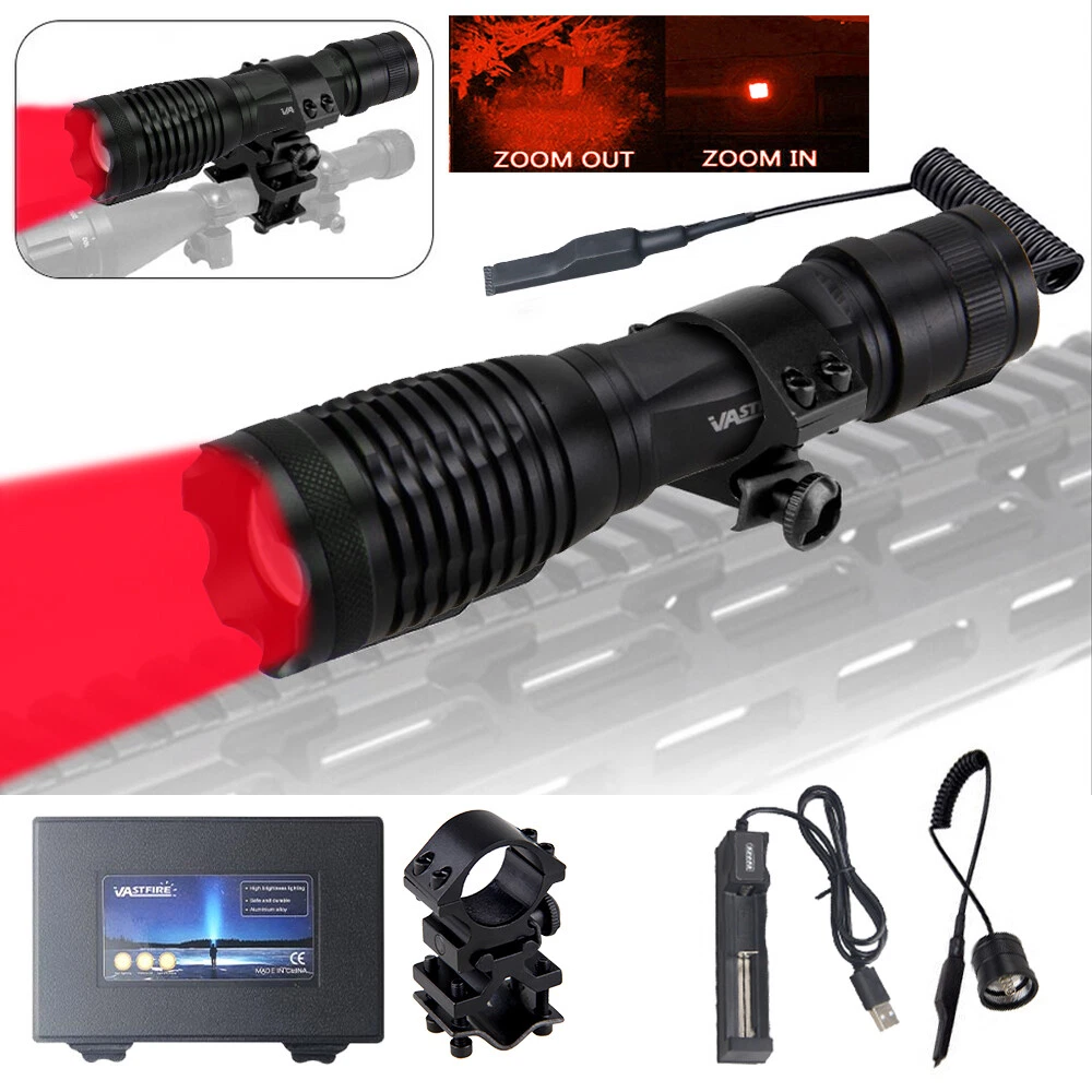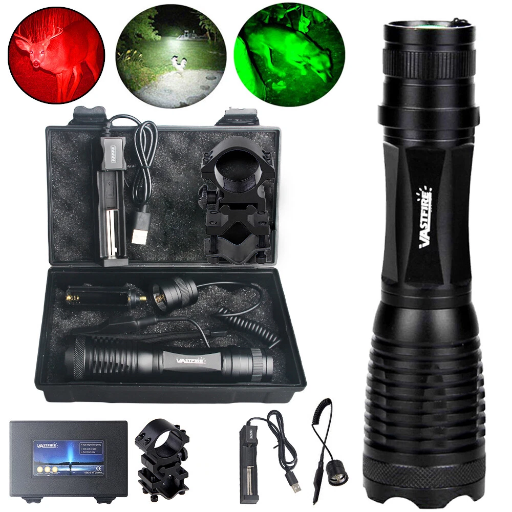 800 Yards Red Green LED Zoom Hunting Light Predator Flashlight Scope Mount W/Box